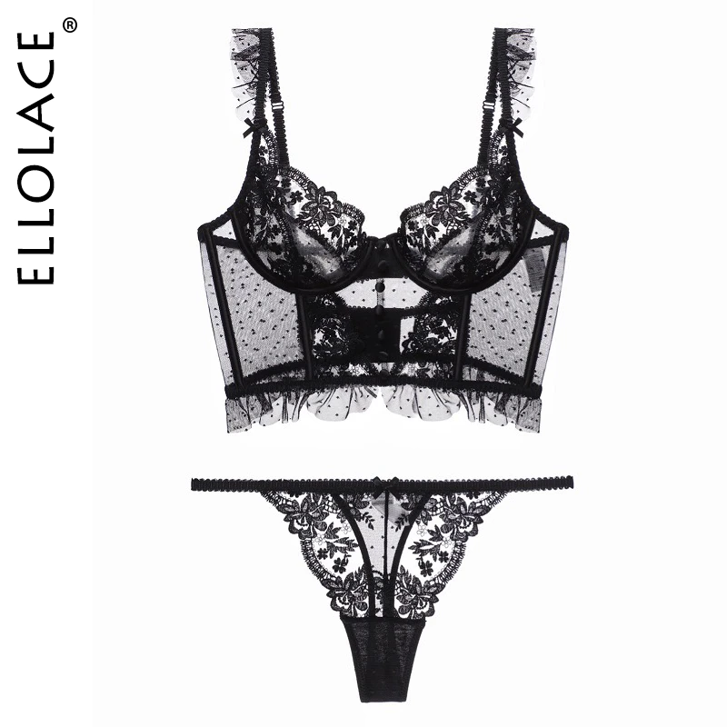 Billionm Fancy Lingerie Lace Ruffles Transparent Bra Embroidery Female Underwear High Quality Seamless Sexy Outfits For Woman