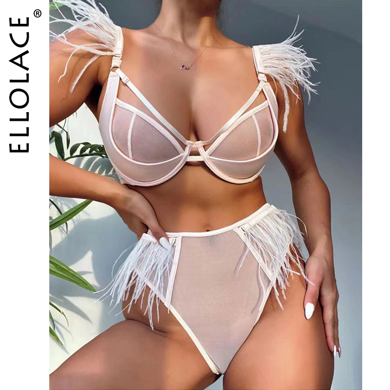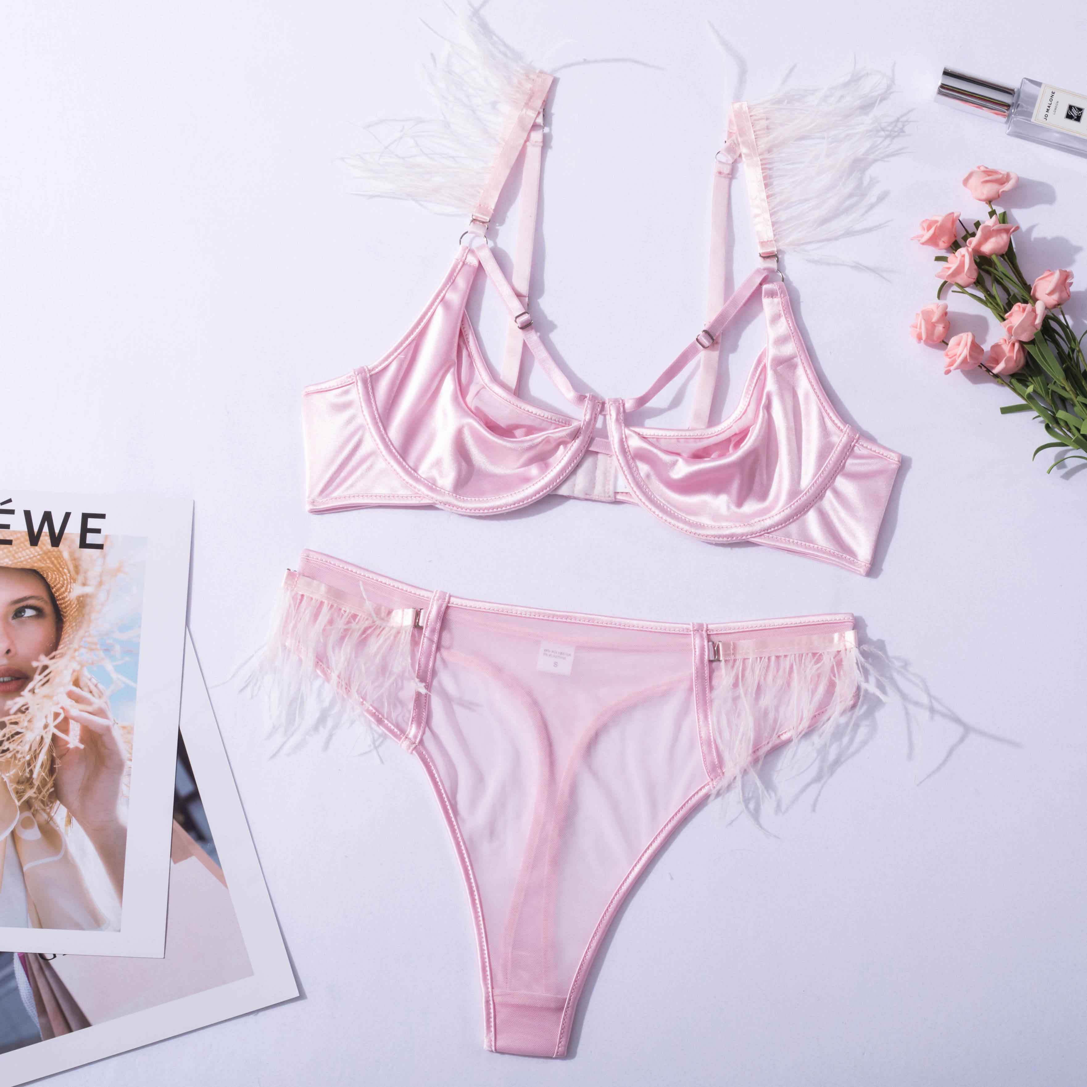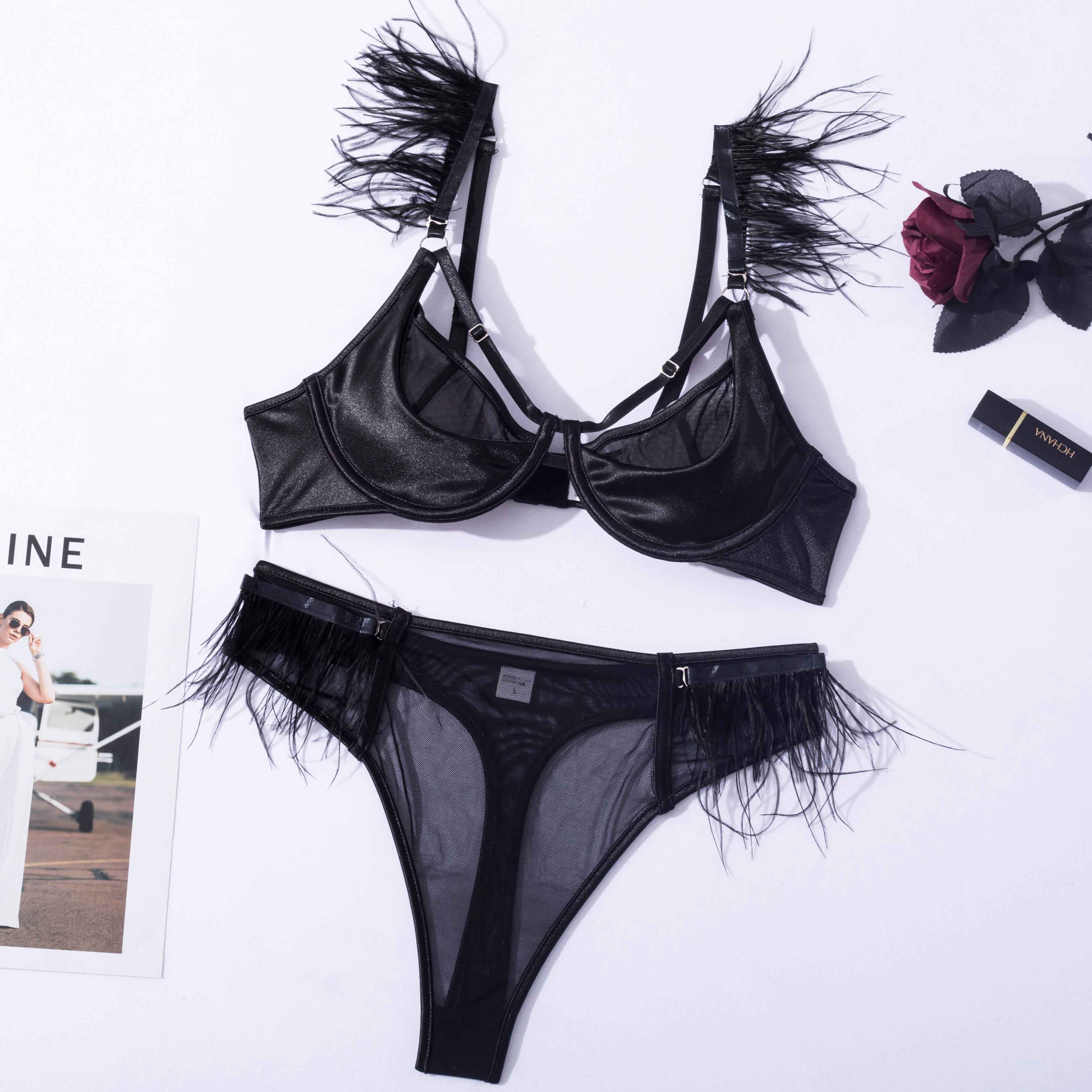 Billionm Feather Lingerie Transparent Bra Sexy Couple Underwear Luxury Lace Set Woman 2 Pieces Seamless Exotic Sets Intimate