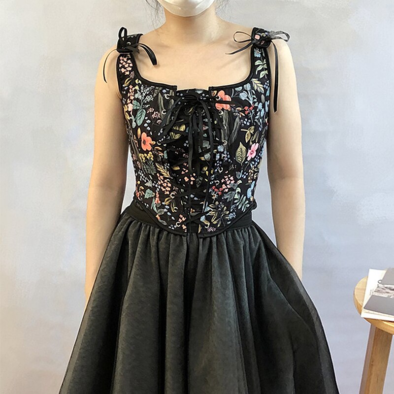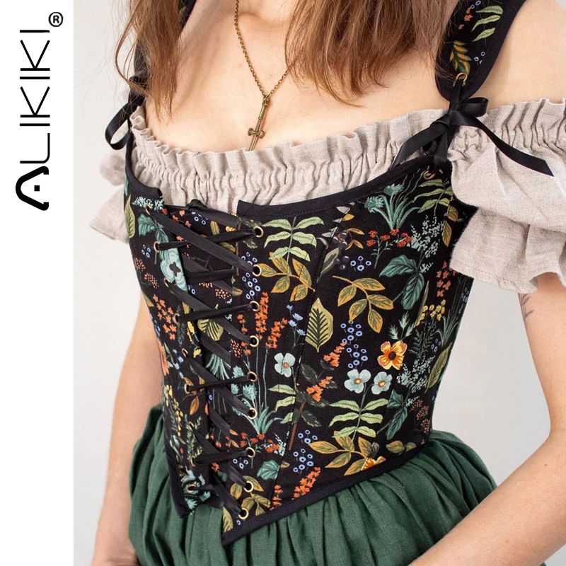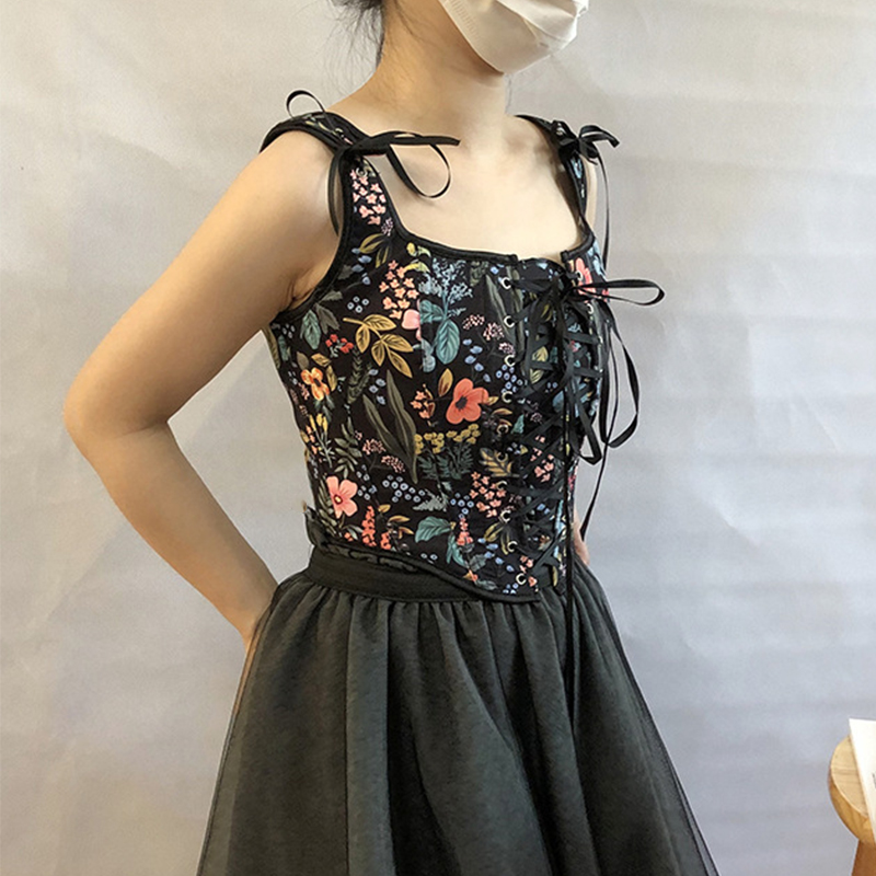Billionm Floral Print Vintage Corset Women Lace Up Buister Crop Top Sleeveless Bandage Tank Top Sexy Chest Binder Camisole Mujer