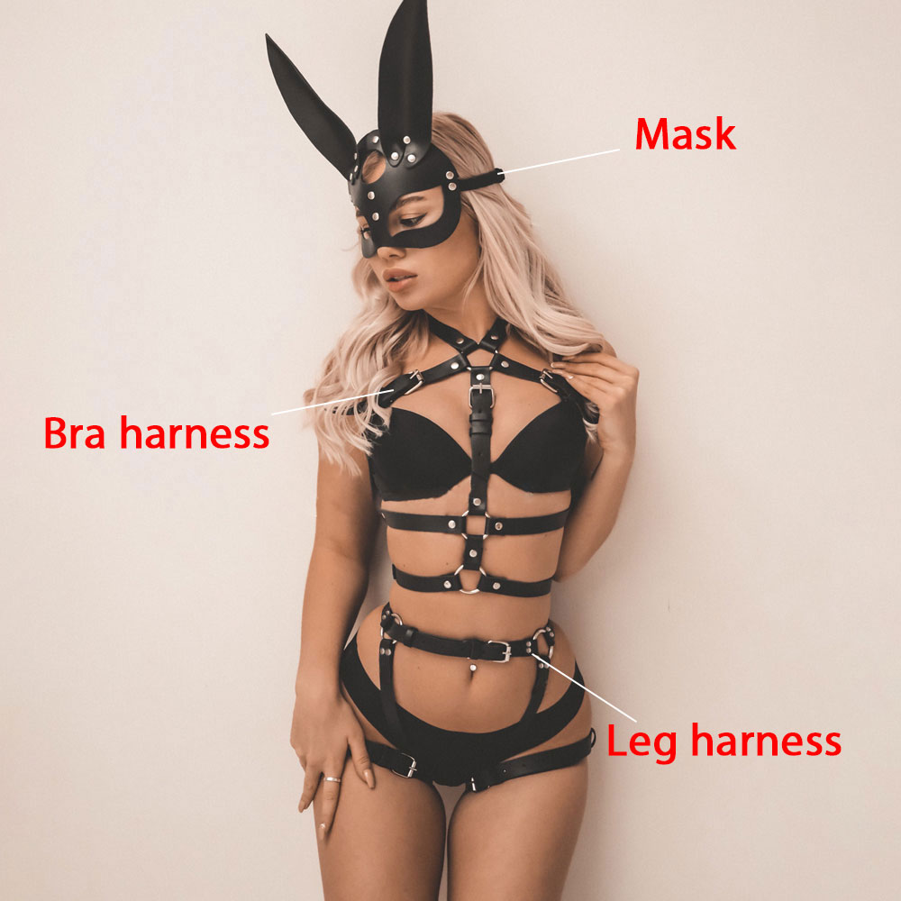 Billionm Fullyoung Sexy Leather Set Harness Woman Sexs Bondage Cage Gothic Suspender Clothes Underwear Body Lingerie PU Belt Strap Mask