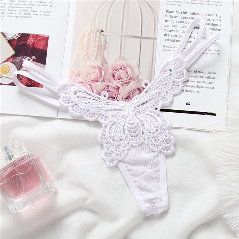 Billionm G-strings Butterfly Panties Women Lace Exotic Lingerie Underwear Open Crotch Embroidery Hollow Out Thong Low Rise T-Back