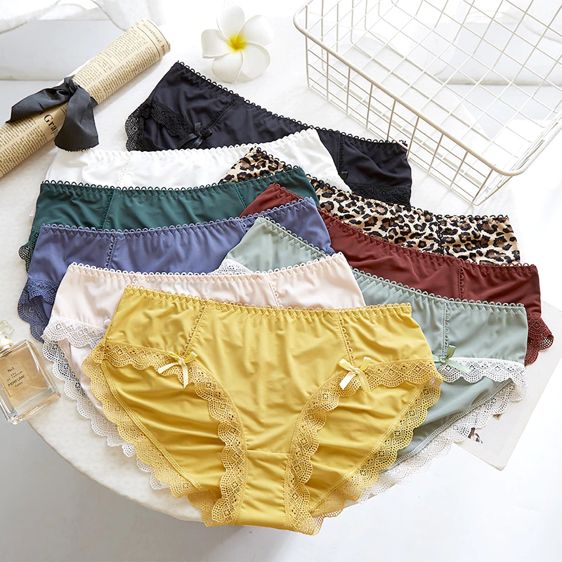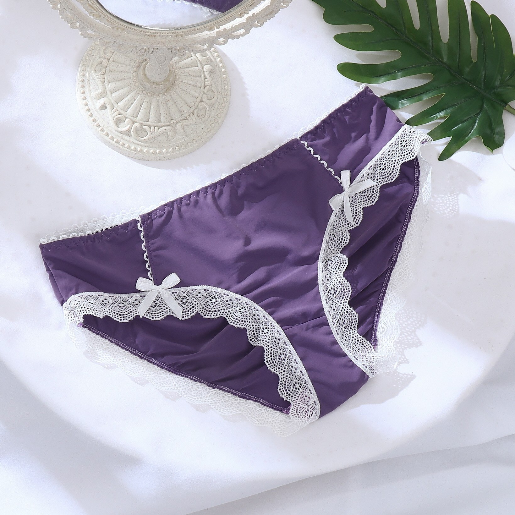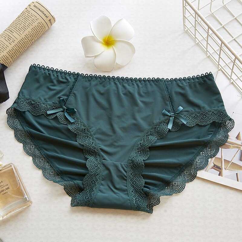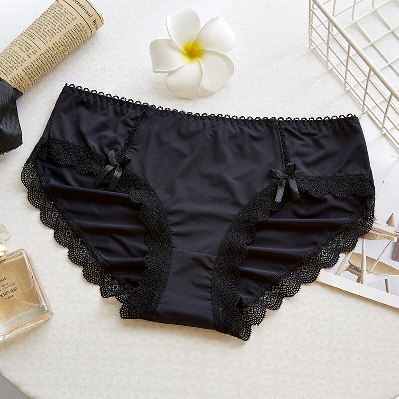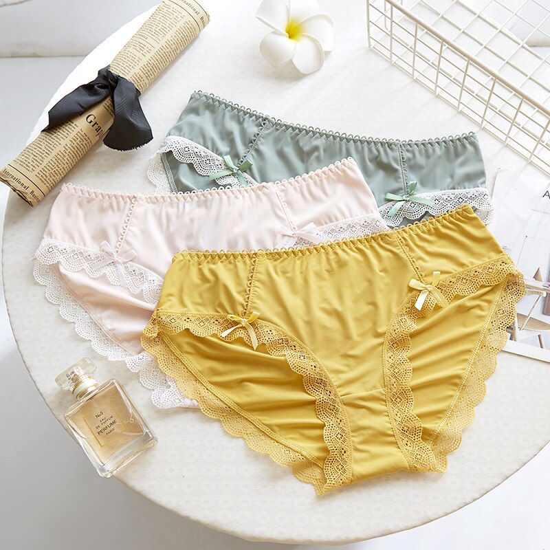 Billionm Girl Glossy Hollow Sexy Ladies Briefs Comfortable Breathable Bow Mid-waist Cotton Bottom Nylon New Lace Edge Lolita