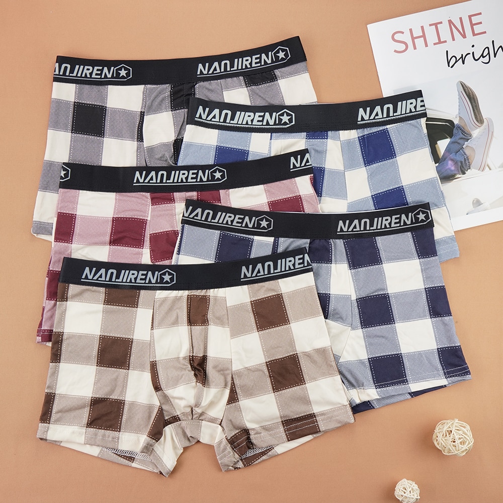 Billionm High Quality Men Underwear U Convex Boxers Shorts Sexy Soft Homme Panties Plaid Breathable Boy Underpants Size L--4XL