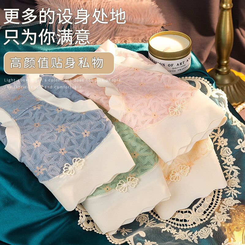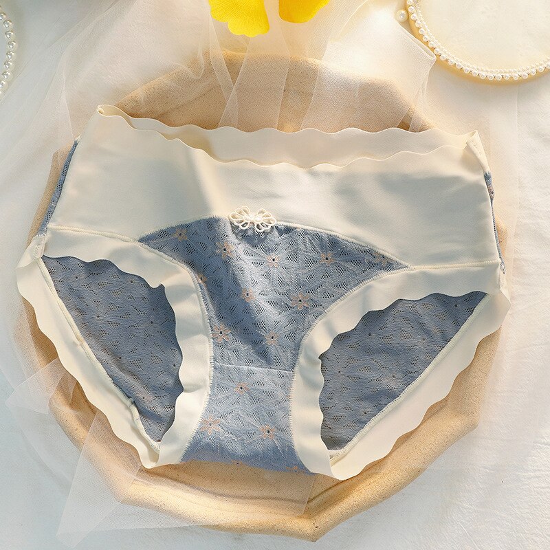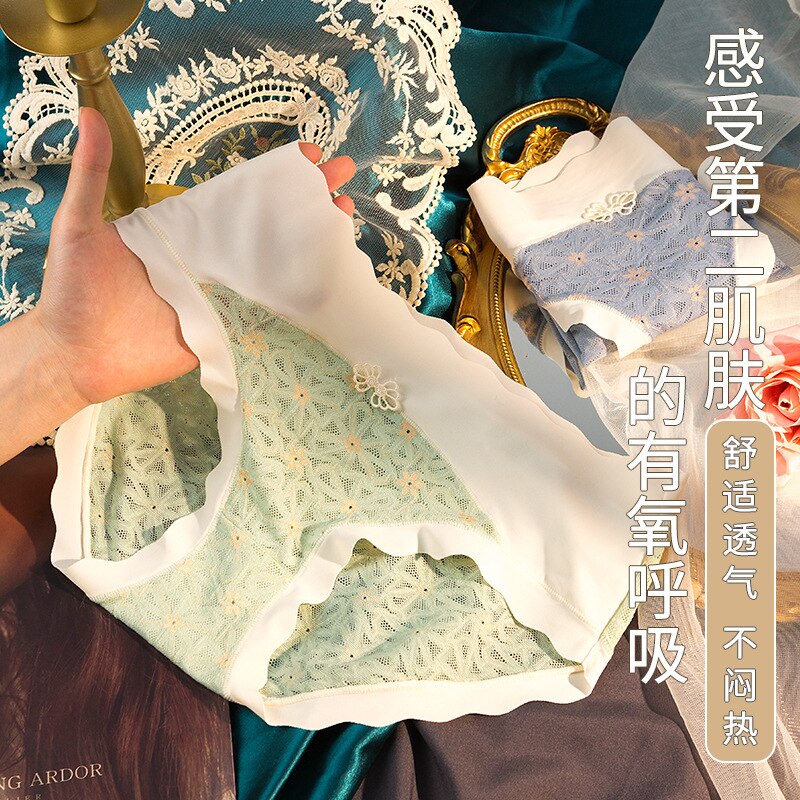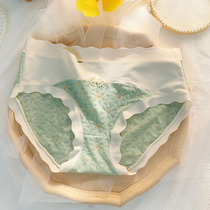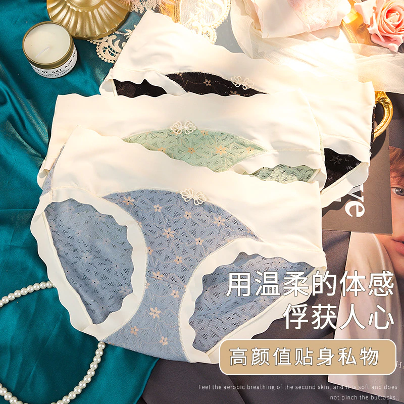 Billionm ice silk ladies plus size panties sexy lace women's underwear panties girls sweet wavy panties seamless mid-waist briefs