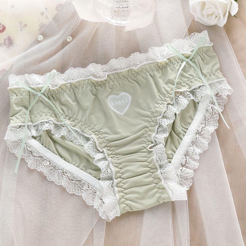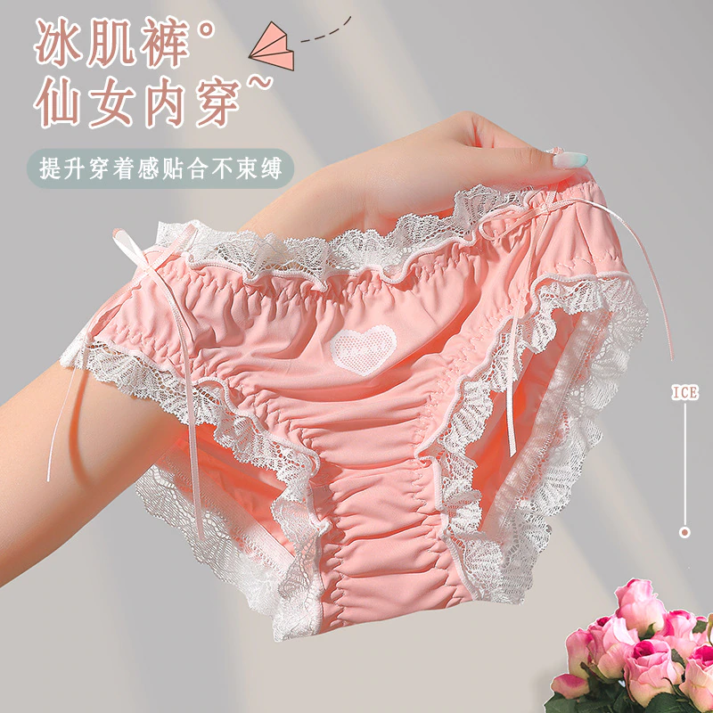 Billionm Ice Silk Panties Female Lace Sexy Lingerie Girls Lolita Love Bow Panties Cute Candy Color Women's Briefs Solid Color Briefs