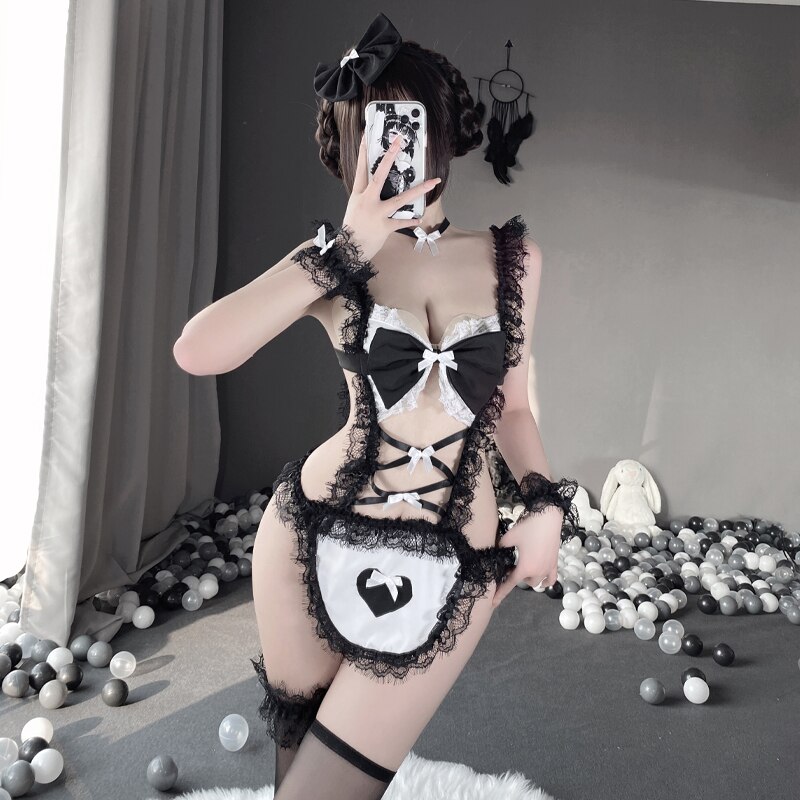 Billionm Japanese Anime Maid Uniform Cosplay Erotic Lace Maid Outfit Perspective Sexy Lingerie Women Open Bust Costumes Porno Underwear