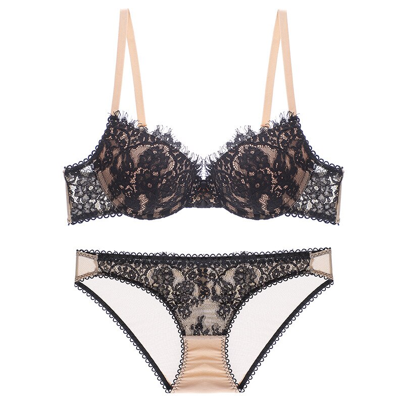 Billionm Lace Bra Set Sexy Women Underwie Push Up Brassiere Panties Thong Set Adjustable Strap Underwear Black Bra Briefs Set