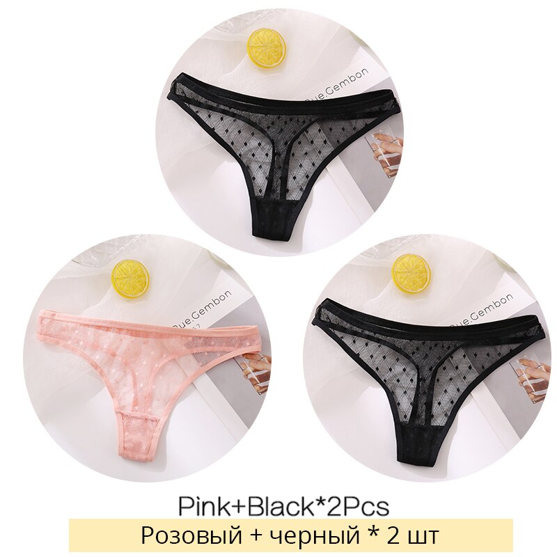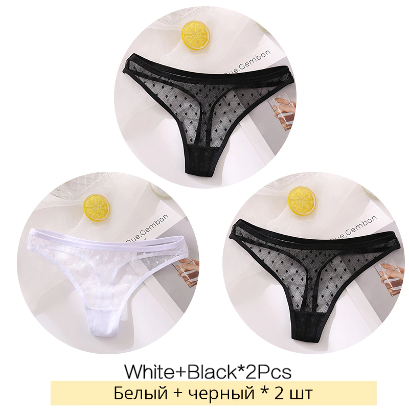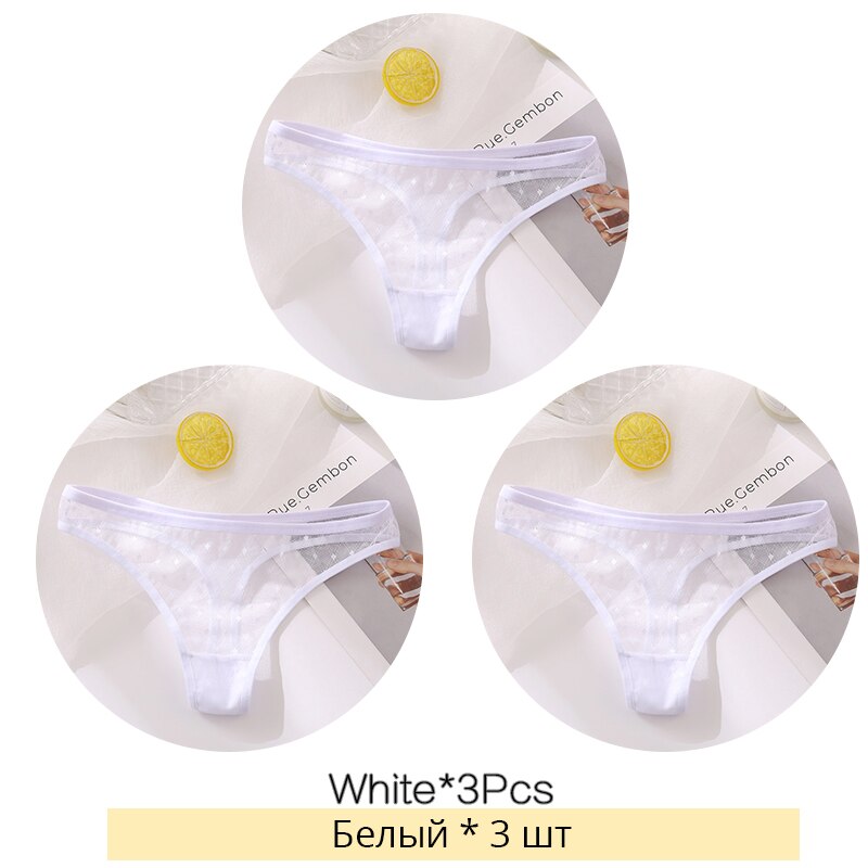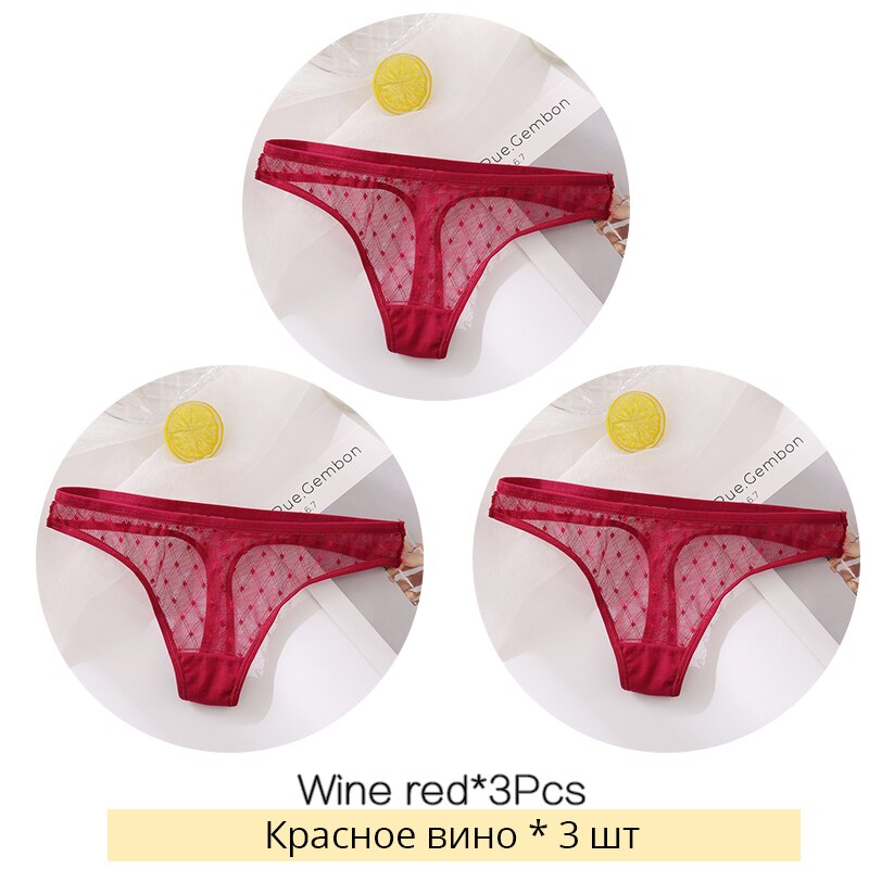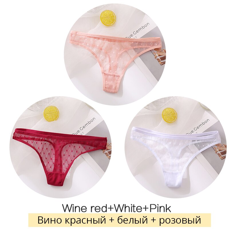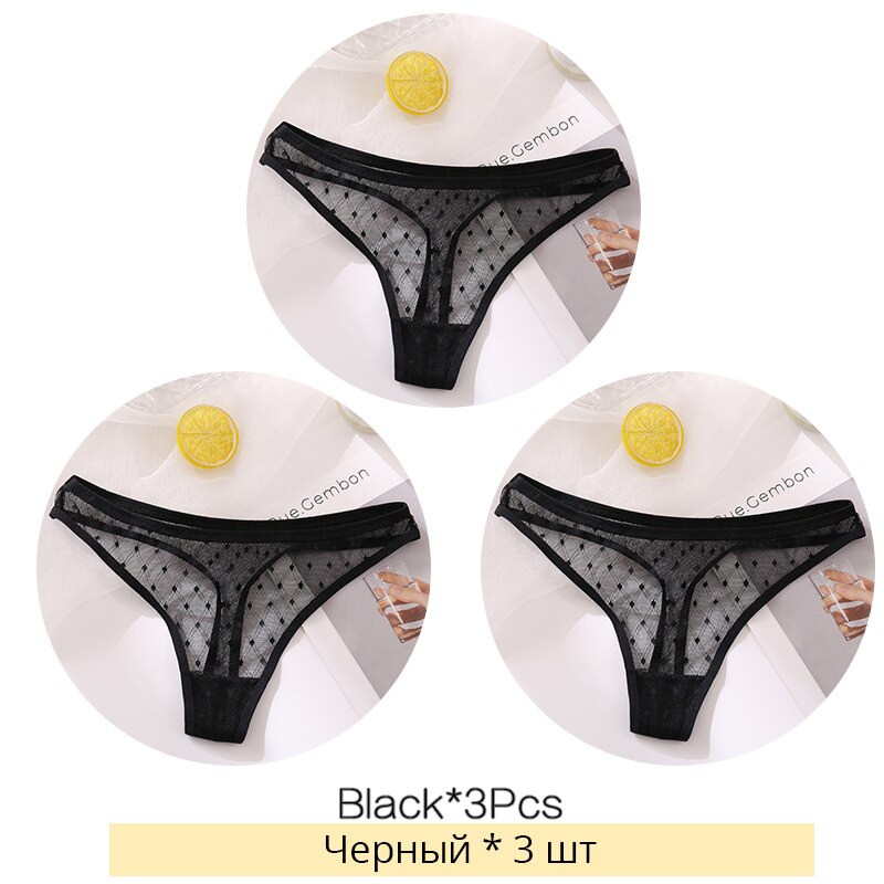 Billionm Lace Thongs Women 3Pcs/Set Transparent G-string Panties Dots Lace T-back Underwear Fashion Female Underpants M-XL