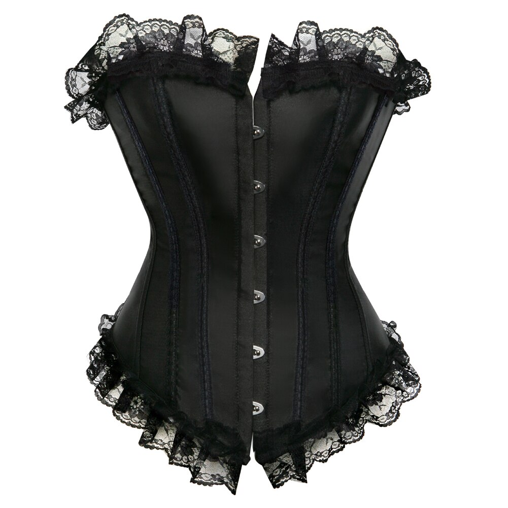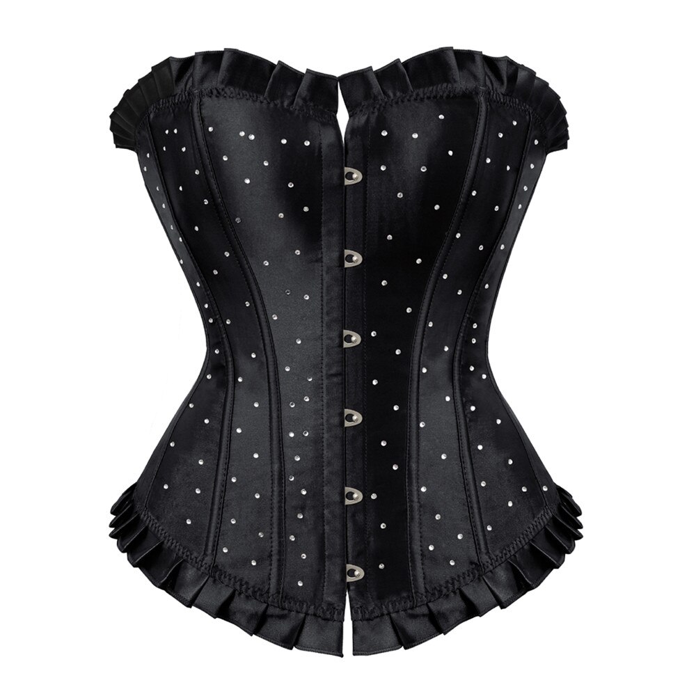 Billionm Lace up Boned Overbust Corset Bustier Rhinestone Satin Costume Showgirl Top Lingerie Plus Size S-6X