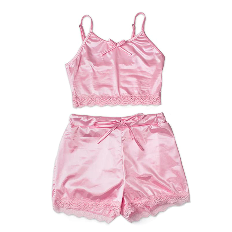 Billionm Ladies Sexy 2 Piece Satin Silk Pajama Set Sleeveless Pyjamas Sleep Shorts Set Lace Pijama Suit Sleepwear For Women Sexy Nighties