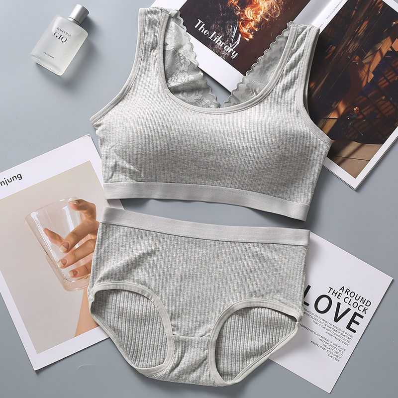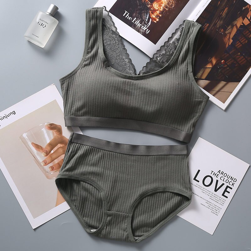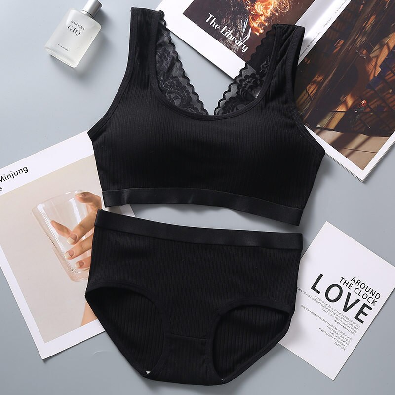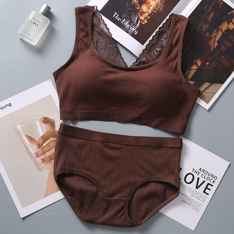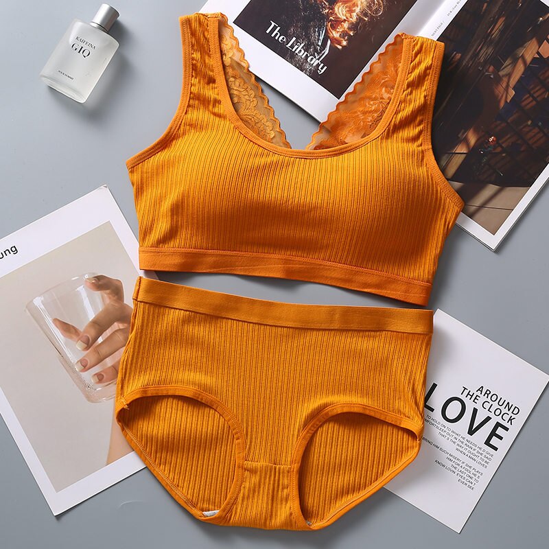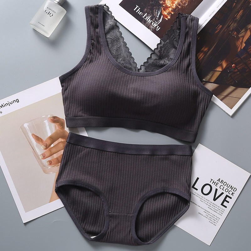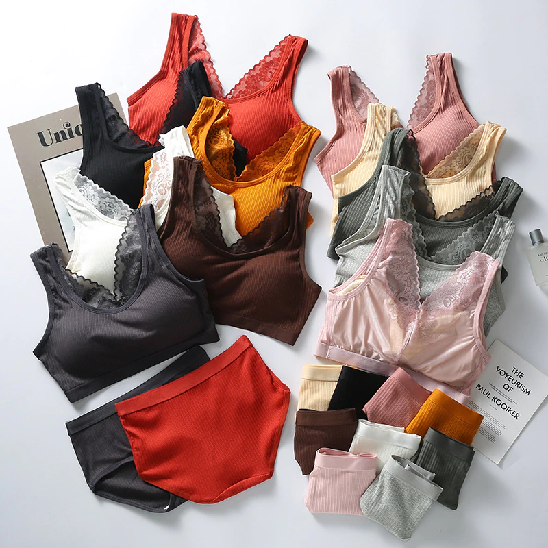 Billionm Large Size Bra&beiefs Set for Women Wireless Padded Underwear Suit Lace Striped Seamless Lingerie Set New
