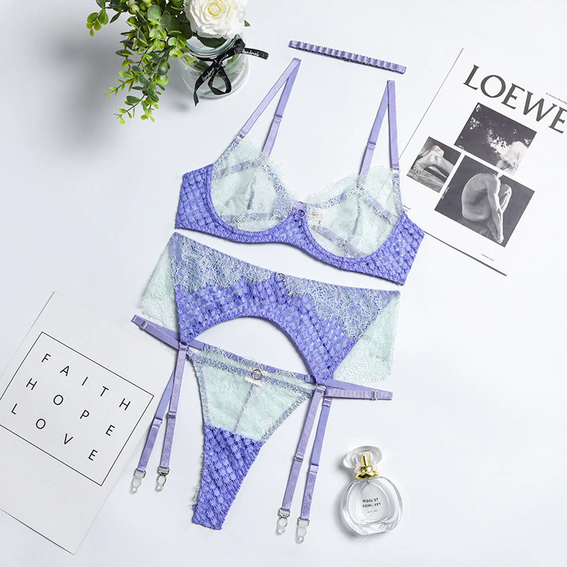 Billionm Lingerie Erotic Underwear For Whore Fancy Lace Sexy Hot Woman Thong Transparent 3-Pieces Garter See-Through Bra Outfits