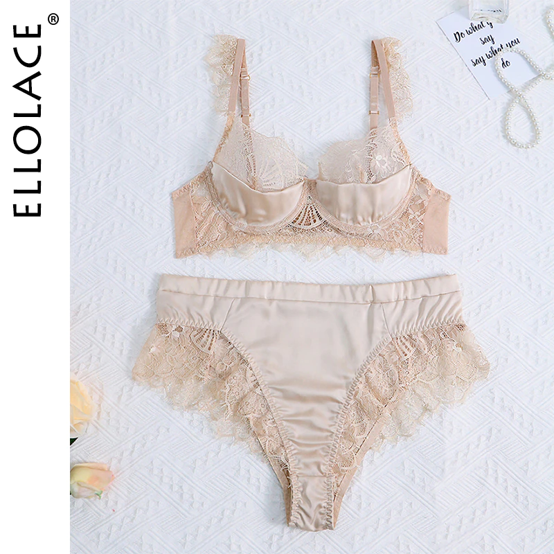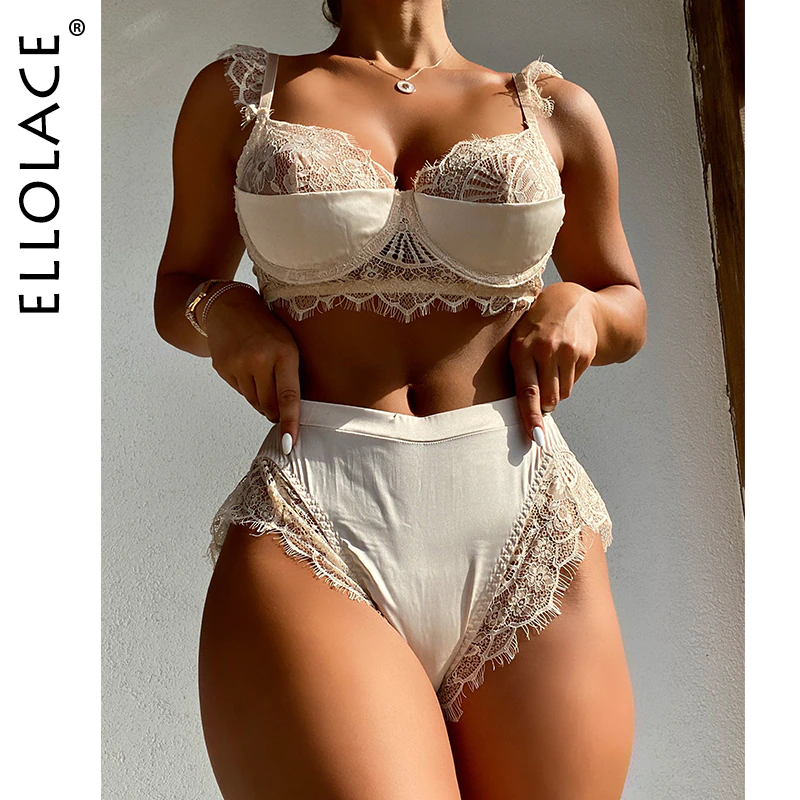 Billionm Lingerie For Women 2 Pieces Lace Patchwork Intimo See-Through Bra High Waist Panties Seamless Fancy Underwear