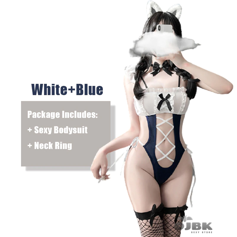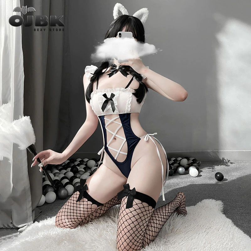 Billionm Maid Cosplay Outfit For Women Kawaii Cat Costumes Hollow Out Sleeveless Halter Japanese Swimsuit One Piece Bodysuit 2021