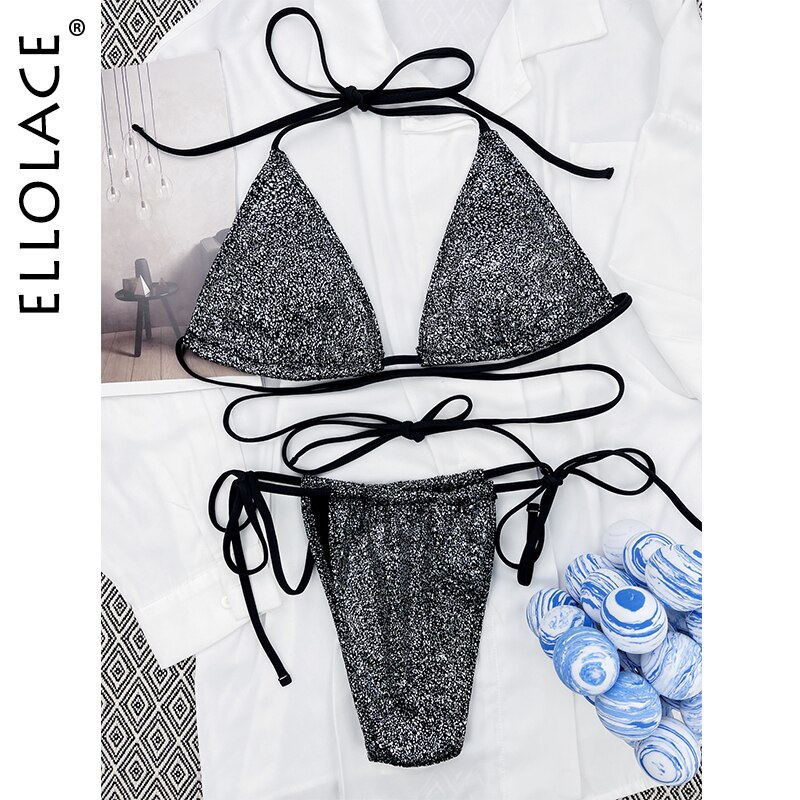 Billionm Micro Bikini Swimsuit Glitter Wrap Around Set Woman 2 Pieces Bathing Suits G String Swimwear 2022 Stylish Beach Outfits