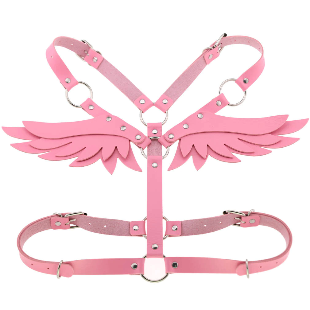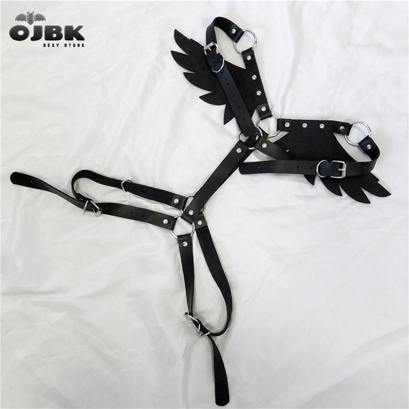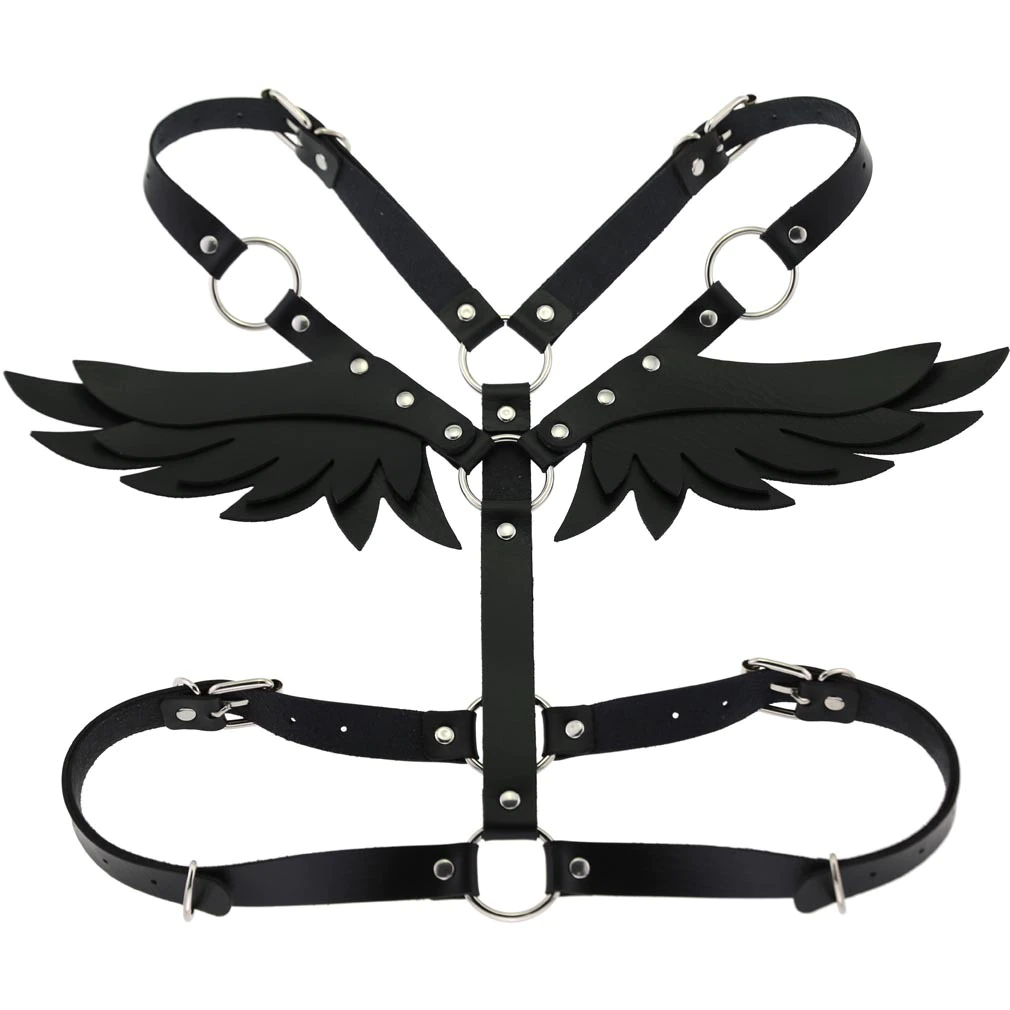 Billionm New Gothic Leather Retro Medieval Renaissance Angel Demon Wings 4 Color Cosplay Accessories Harness Top Tie Punk Body Belt