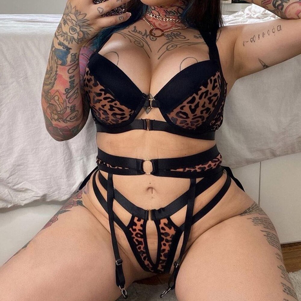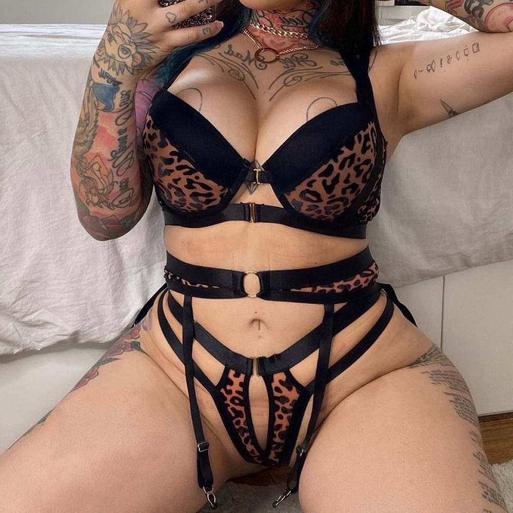 Billionm New Leopard Lingerie Women Sexy Hollowing Out Underwear Patchwork Sex Costumes Erotic Clothing Open Crotch Lengerie Bra Panty