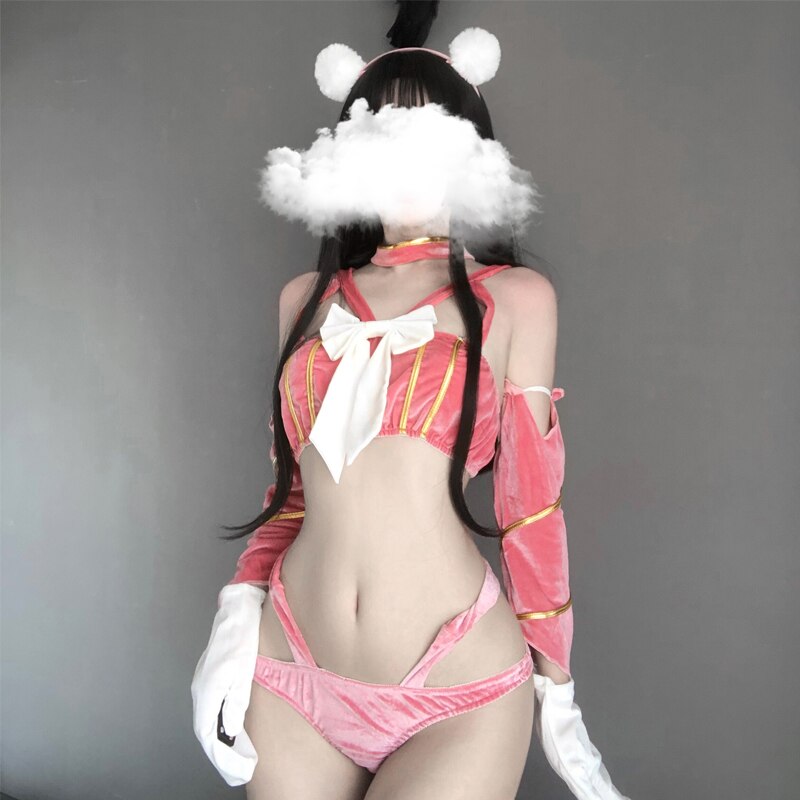 Billionm OJBK Golden Velvet Sexy Breast Wrapping With Bowknot Uniform 3 Color Women Lingerie Set Kawaii 6pcs Underwear Temptation Outfits