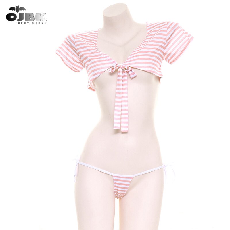 Billionm OJBK Kawaii Bra Set Women's Swimming Suit Sexy Swimsuit Pink Blue Swimwear Striped Swimsuit Erotic Beachwear Bathing Outfit