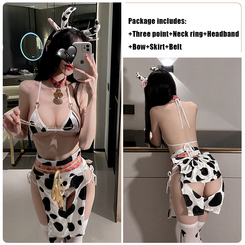 Billionm OJBK Kawaii Cow Maid Cosplay Japanese Anime Halter Mini Apron Outfit Cute Milk Bikini Lingerie Set For Women Animal Cow Costume