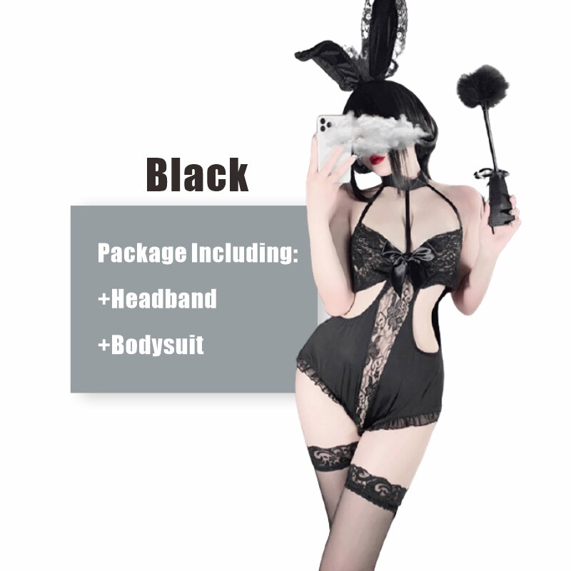 Billionm OJBK Sexy Cute Bunny Costumes Temptation Transparent Lace Jumpsuit Halter Holllow Bowknot Lingerie Rabbit Uniform Cosplay 2021