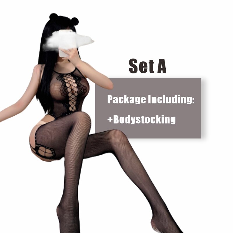 Billionm OJBK Women Lingerie Crotchless Bodysuit Fishnet Bodystocking Lace Halter Garter Mesh Hole Nightwear One Piece Bodysuit Plus Size