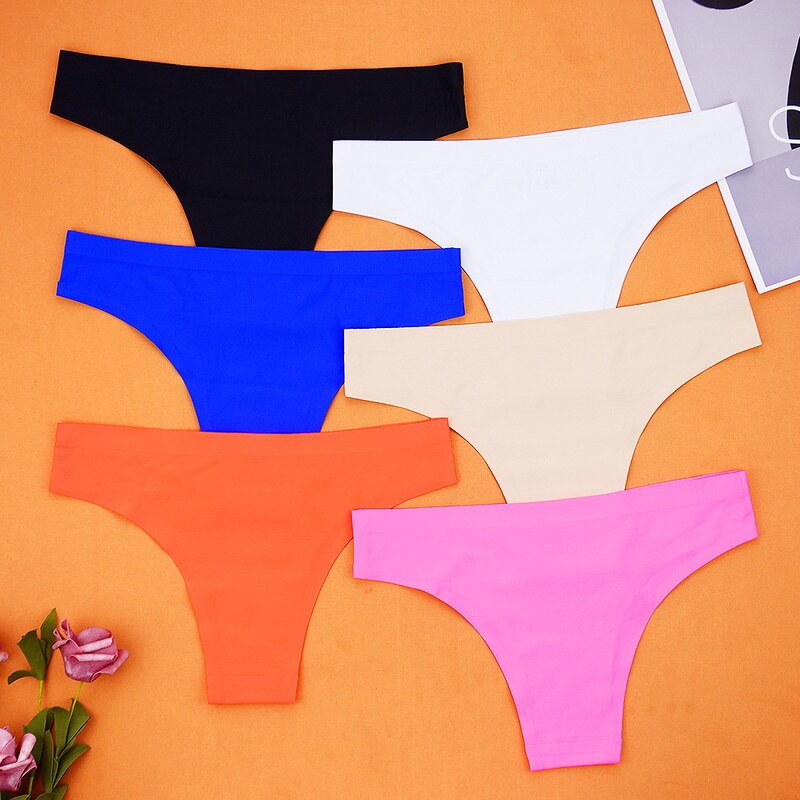 Billionm Panties Women Thong Lingerie Seamless Strings Ice Silk Woman Low-waist Knickers S-XL Underpants Tanga 6pcs/lot