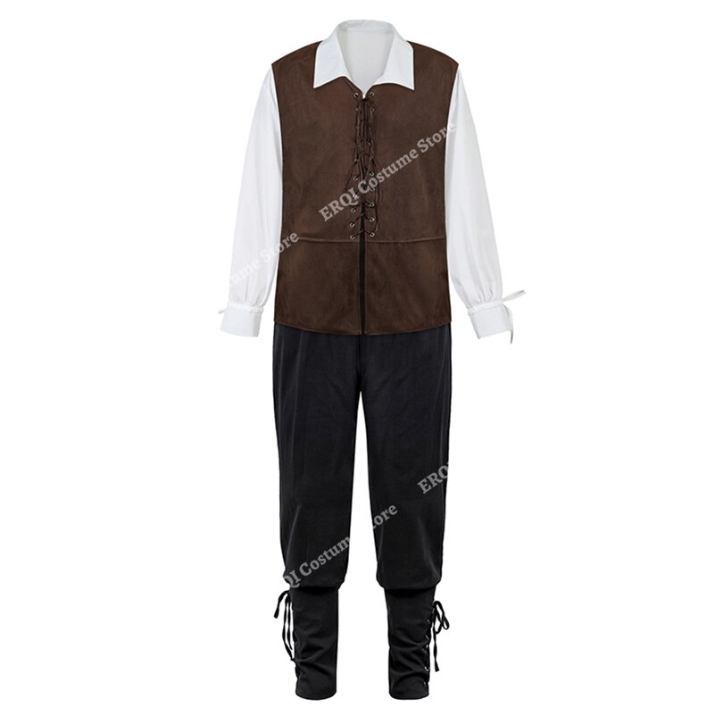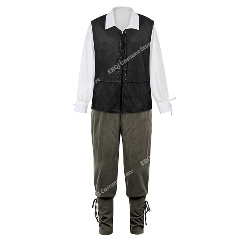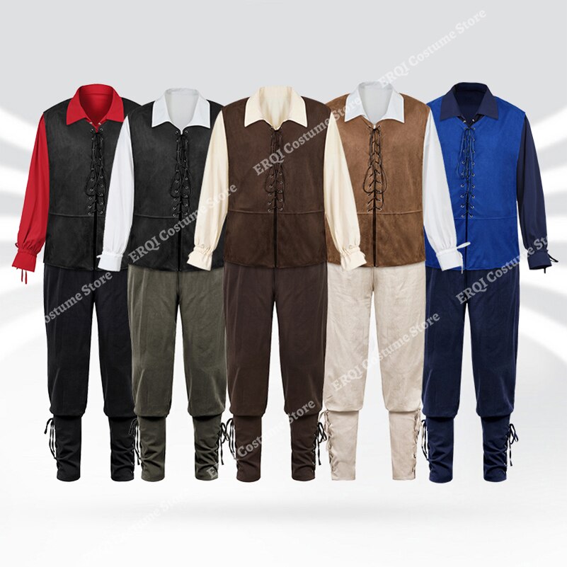 Billionm Pirate Costume Men Plus Size Medieval Renaissance Chevalier Clothing Adult Steampunk Gothic Pirate Uniform Set 3 Piece