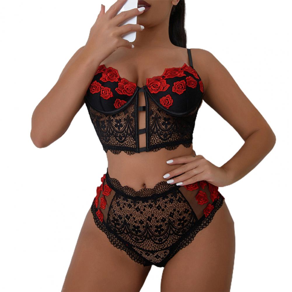 Billionm Porno Sexy Lingerie Transparent Lace Bandage Embroidery Flower Bra High Waist Panty Set Bra Briefs Women Exotic Sets