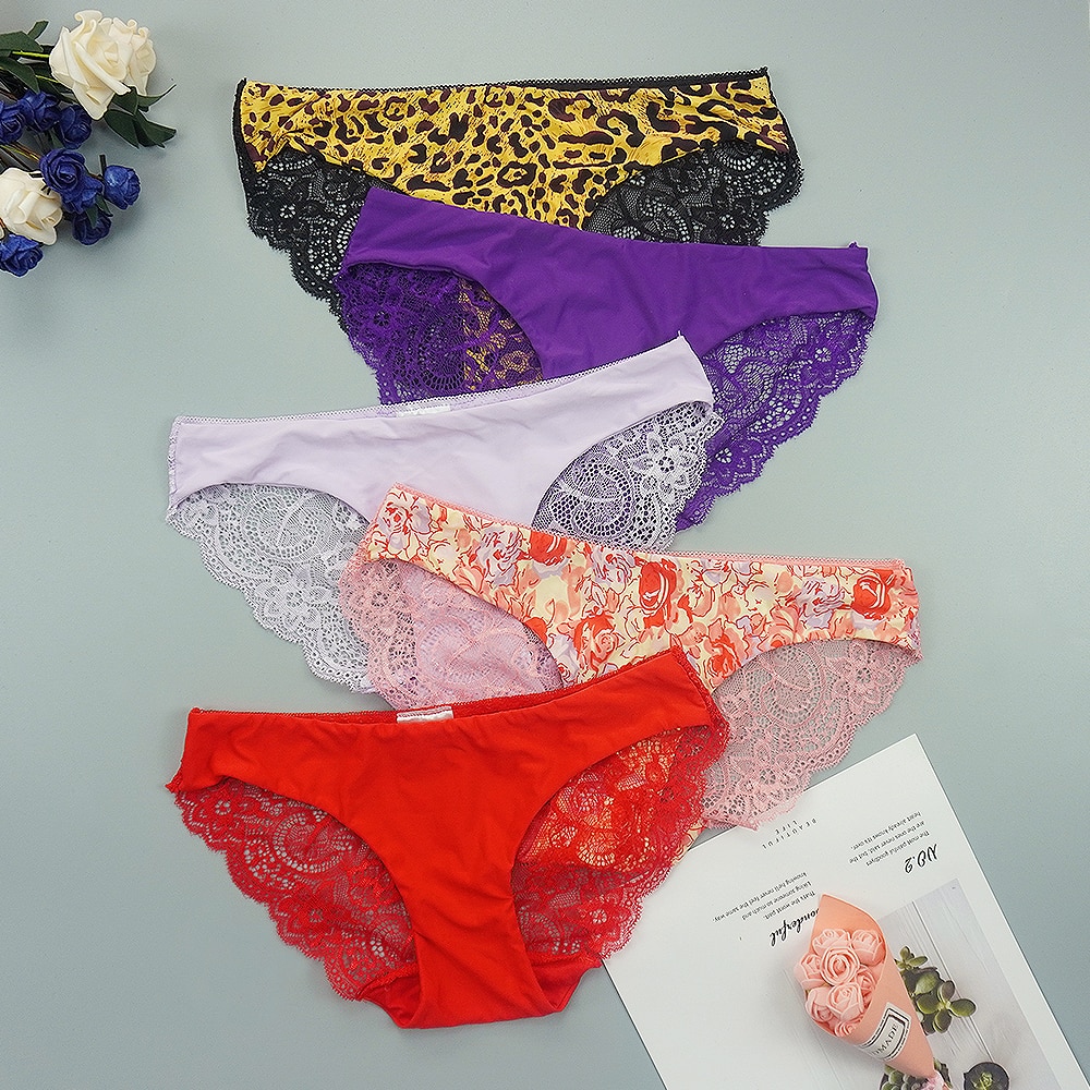 Billionm S-XXL 5 Size Women Sexy Underwear Transparent Hollow Women's Lace Panties Seamless Panty Briefs Intimates
