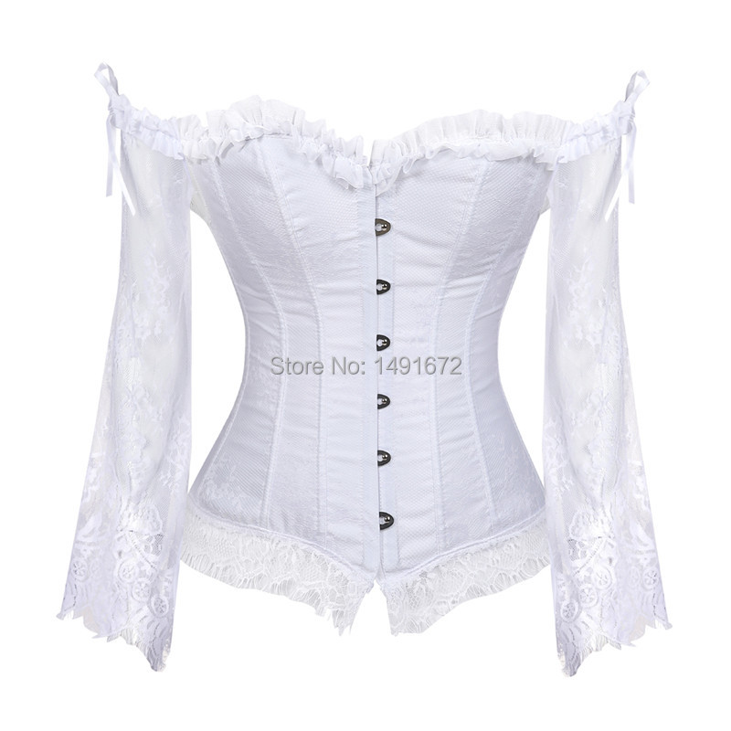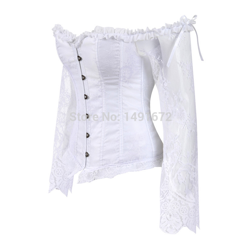 Billionm Sapubonva Corset Bustier Top for Women with Sleeves Vintage Style Victorian Retro Burlesque Lace up Vest Fashion White Black