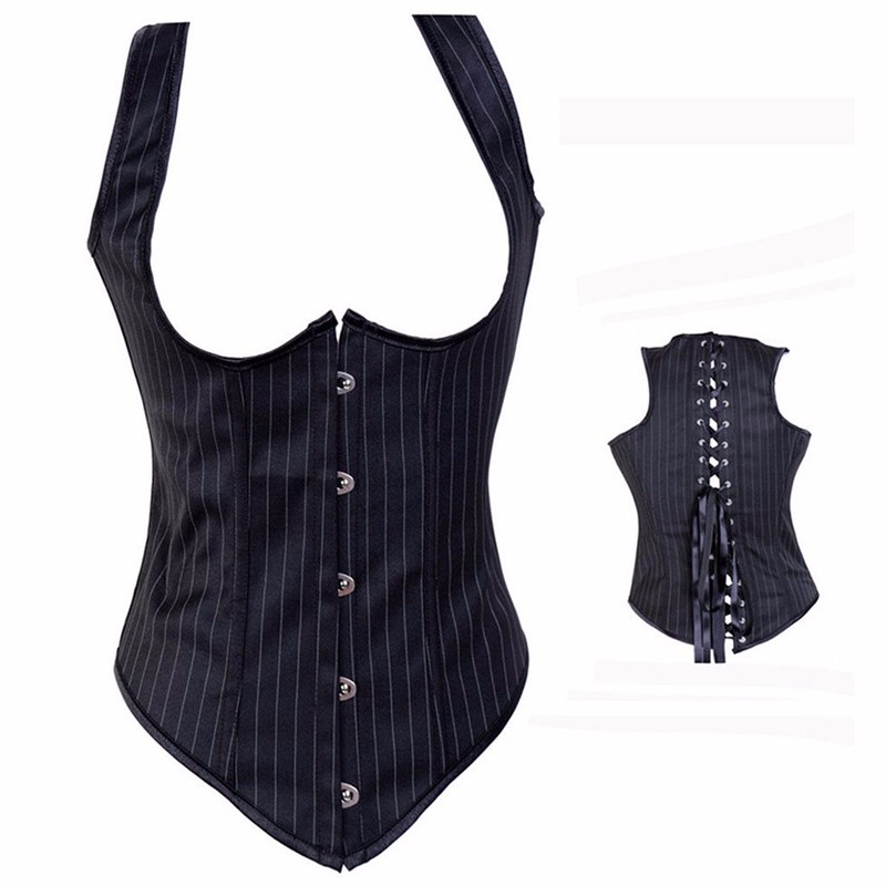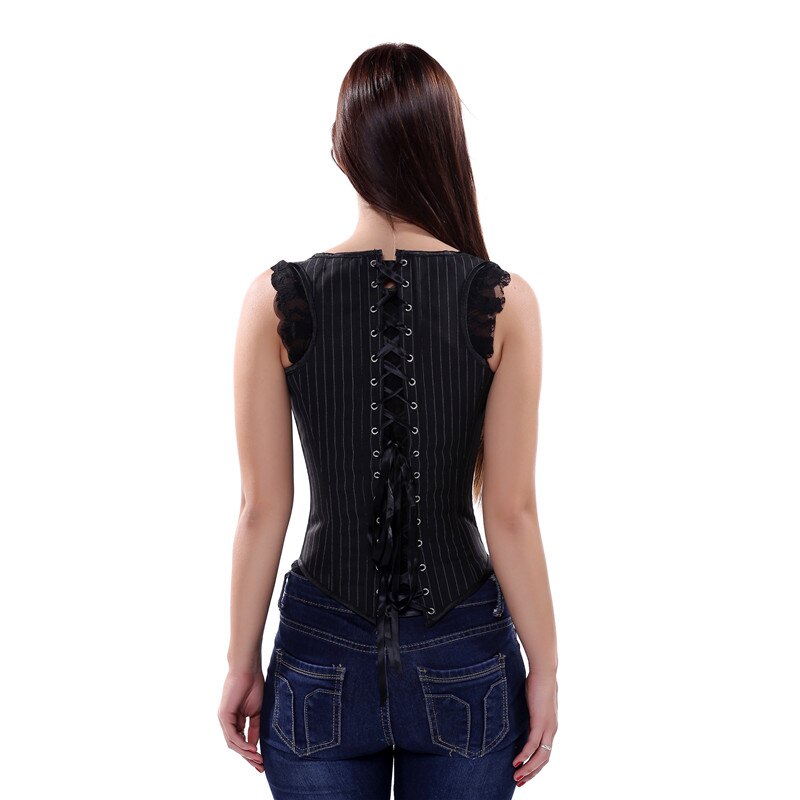 Billionm Sapubonva Corset Underbust Shoulder Straps Striped Lingerie Vest Women Top  Sexy Plus Size Costume Victoriano Black Mujer