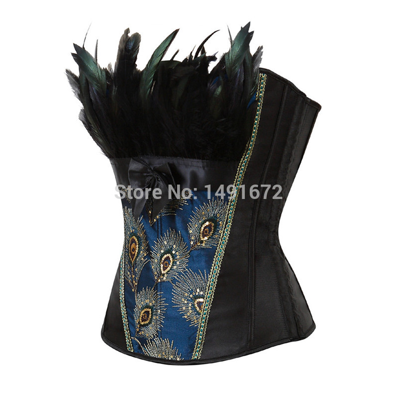 Billionm Sapubonva feather corsets bustiers top peacock embroidery brocade burlesque halloween overbust corset pattern womens sexy exotic