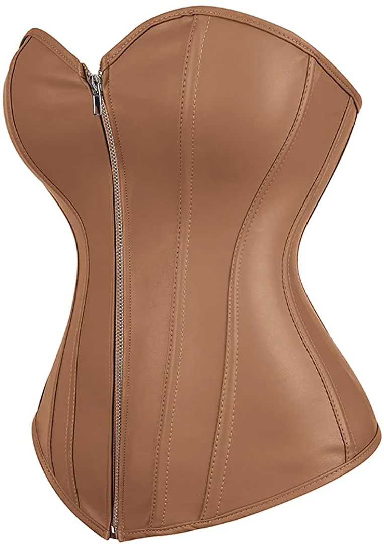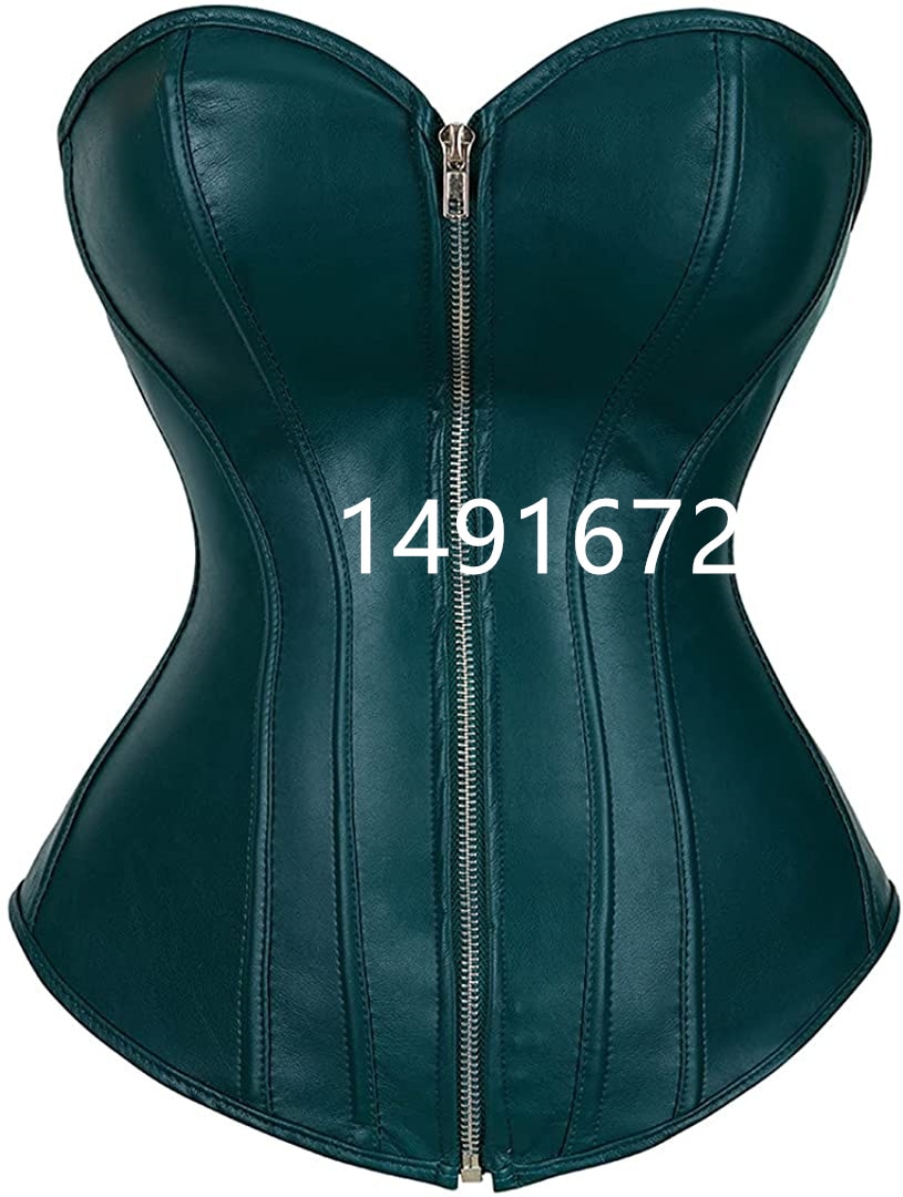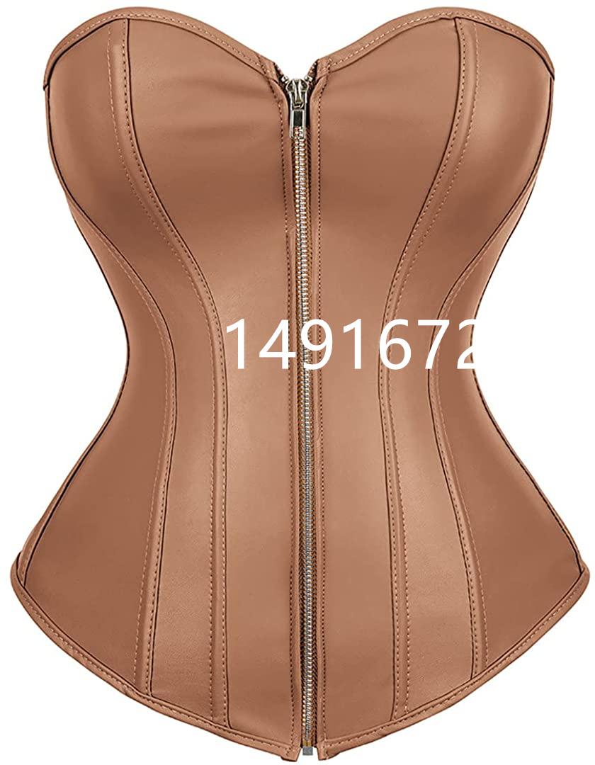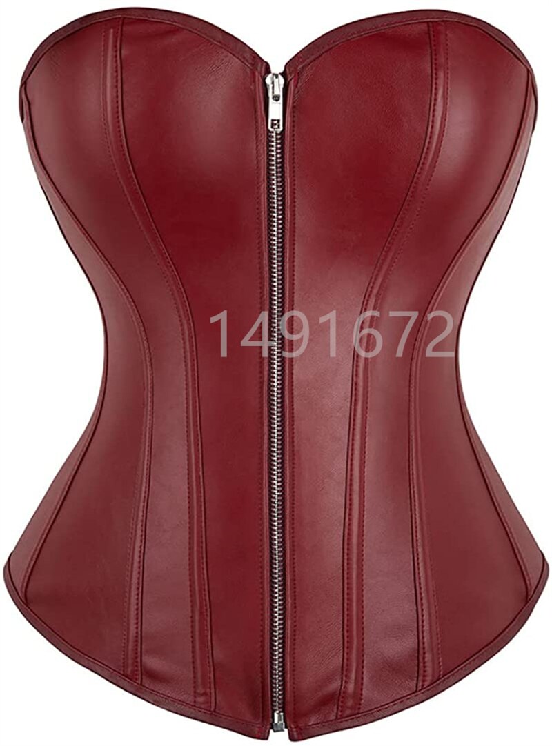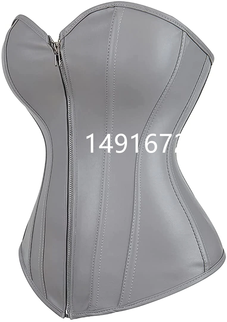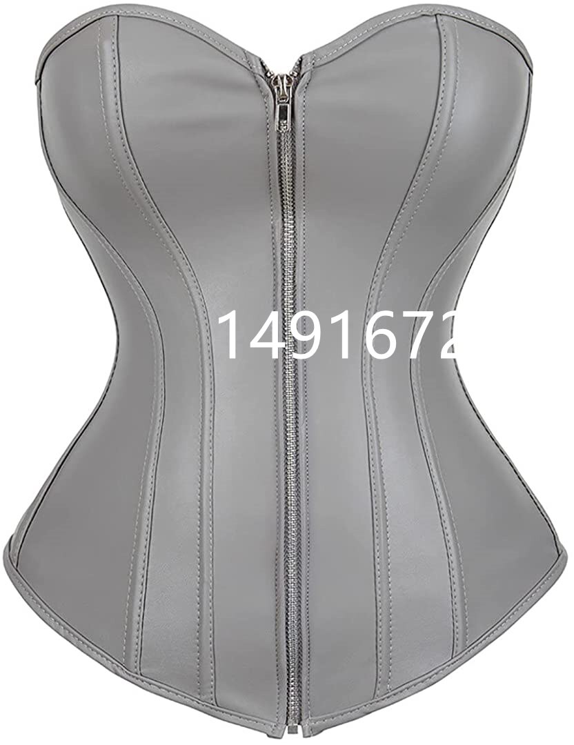 Billionm Sapubonva Leather Corset Lace up Zipper Shiny Corsets Bustier Overbust Burlesque Costumes Body Shaper Sexy Women Plus Size Black