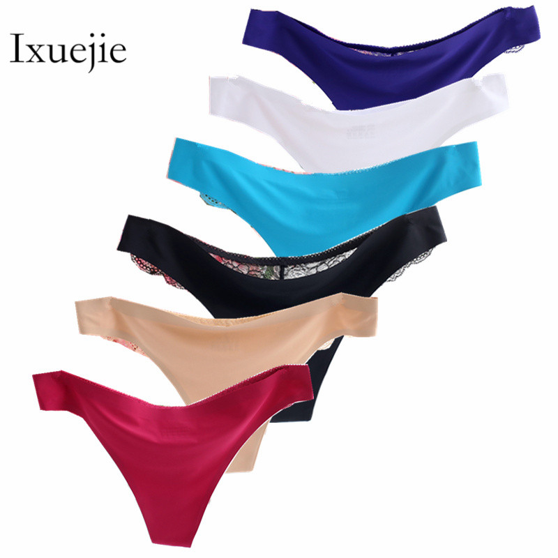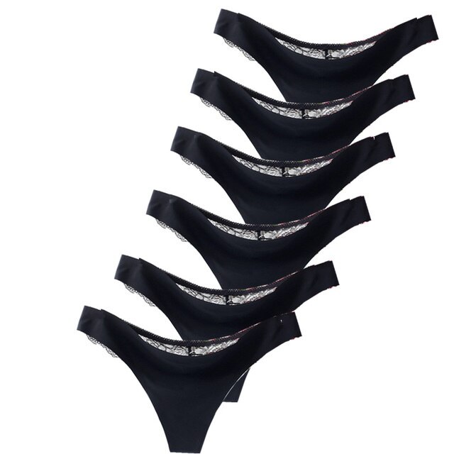 Billionm Seamless Thong Tangas 6pcs/lot Women Fashion Panty Sexy Lace Ice Silk G String Femme Comfortable Ladies Underwear