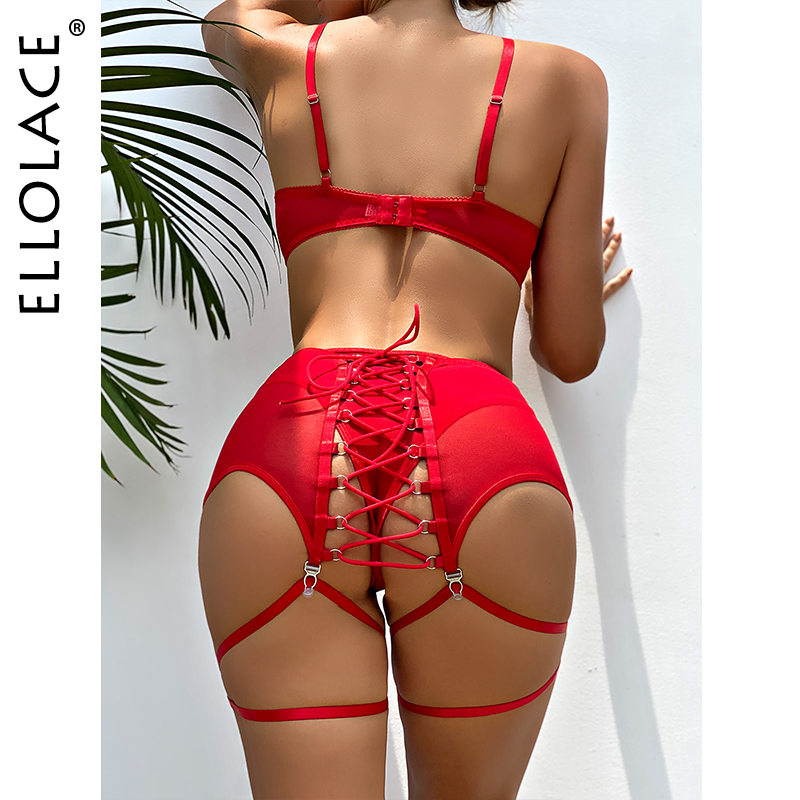 Billionm Sensual Lingere Exotic Bandage Garter With Stockings Transparent Bra Intimate Hard Woman 3-Piece Black Fancy Underwear