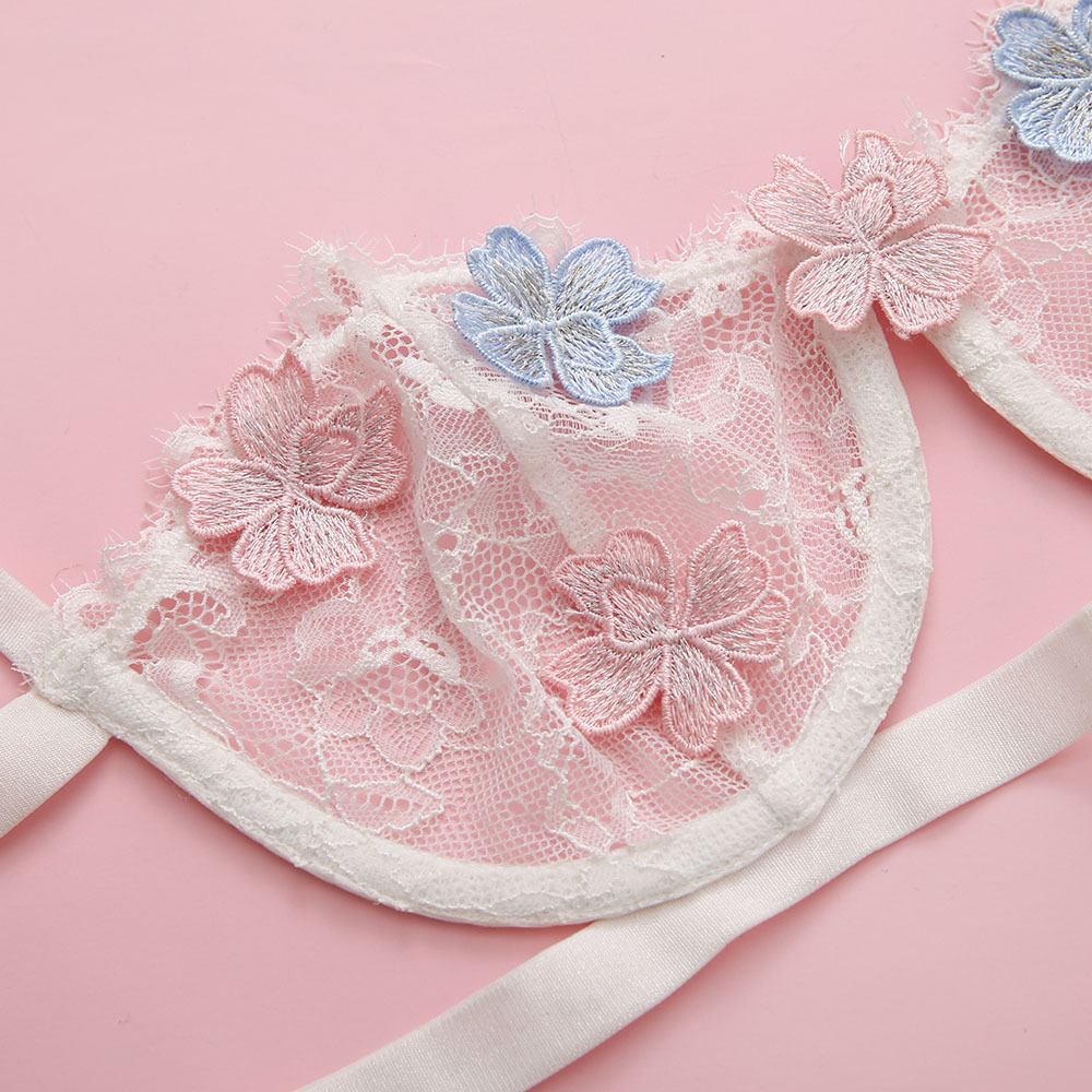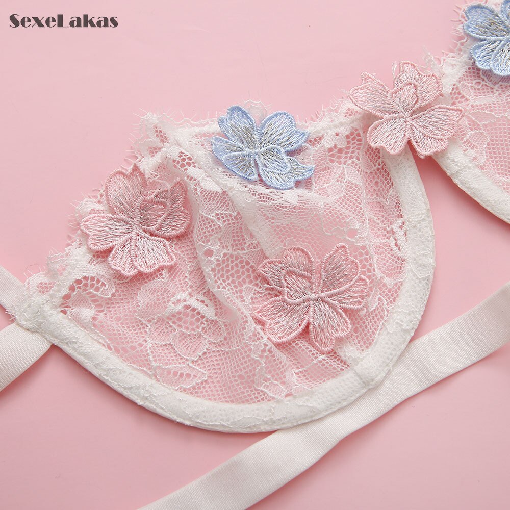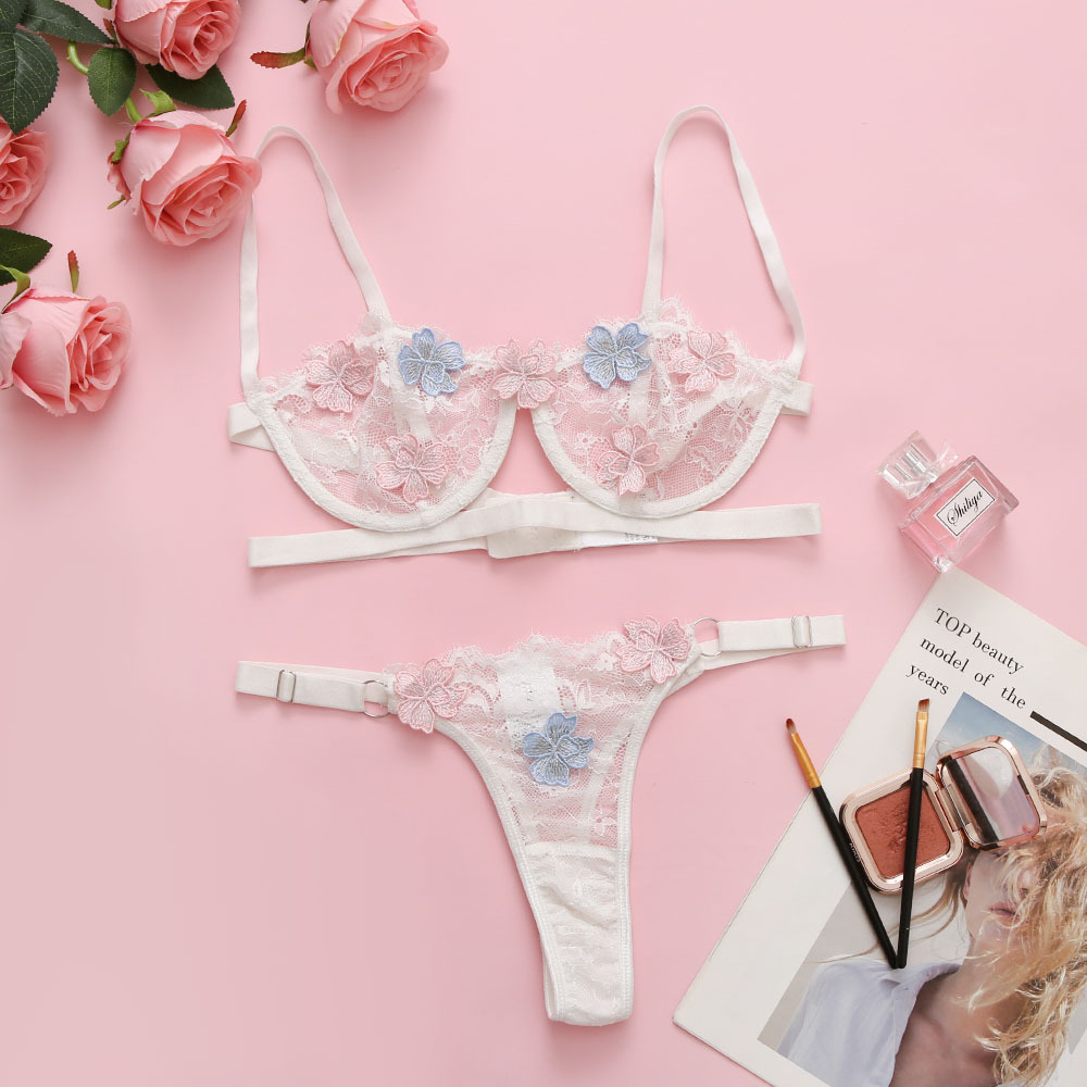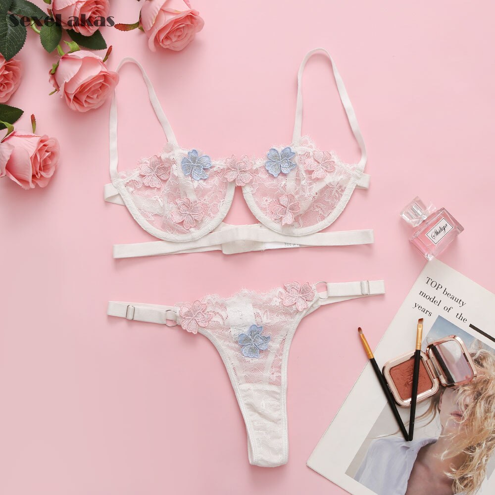 Billionm SexeLakas Sexy Lingerie White Lace Floral Intimate Underwear Flower Appliques Set Sensual Perspective See Through Women Sets