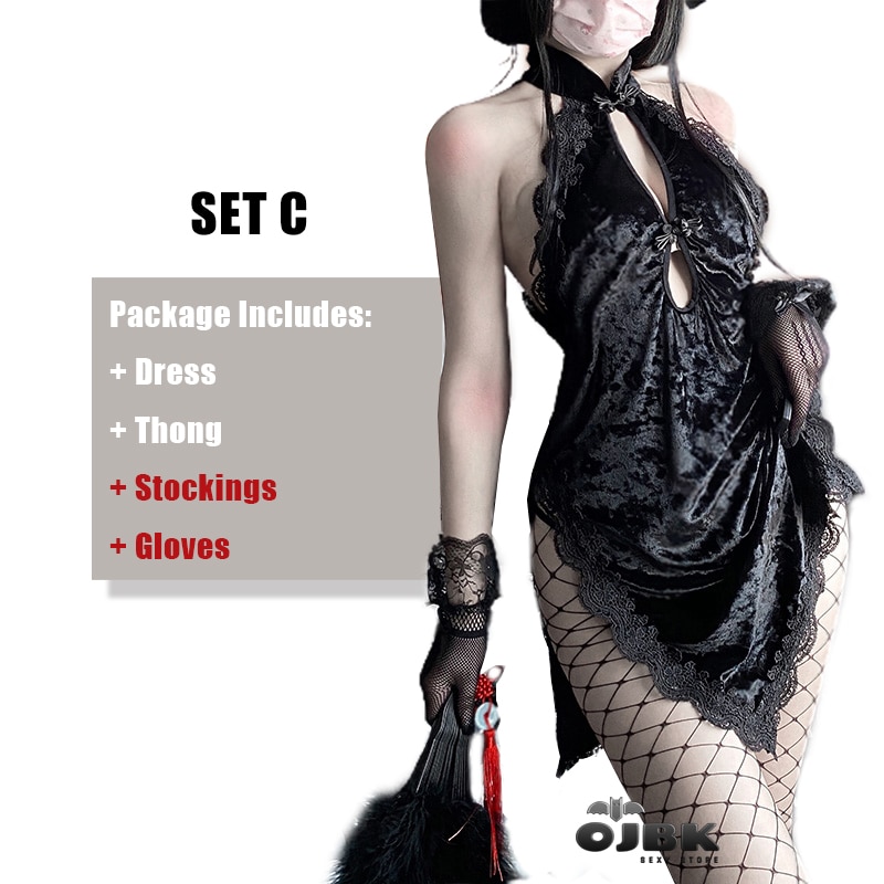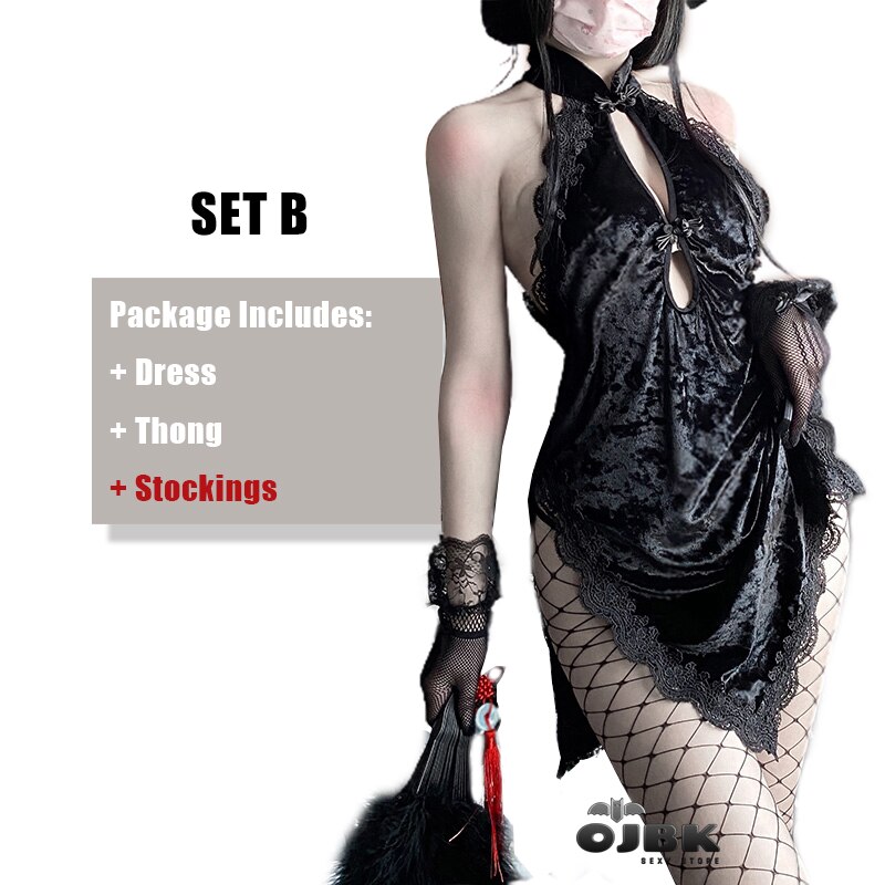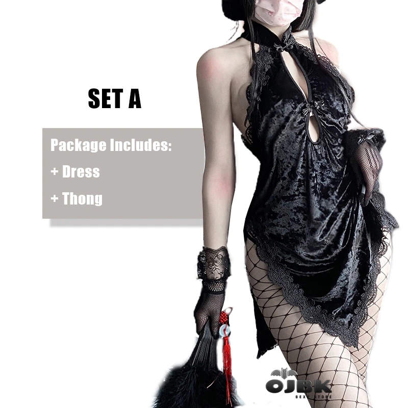 Billionm Sexy Anime Cosplay Costumes Gothic Asian Cheongsam Lace Floral Halter Hollow Dresses Erotic Outfit Lingerie For Women 2021 New