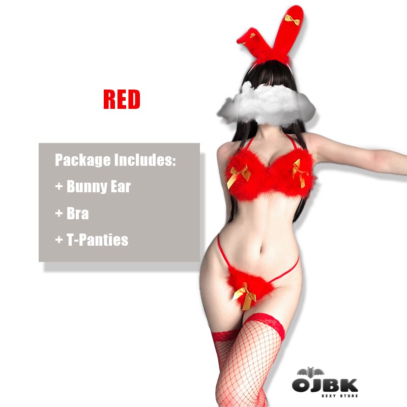 Billionm Sexy  Christmas Cosplay Costumes Cute Bunny Girl Lingerie For Women Three Point Hanging Neck Bra Set Passion Temptation Bikini