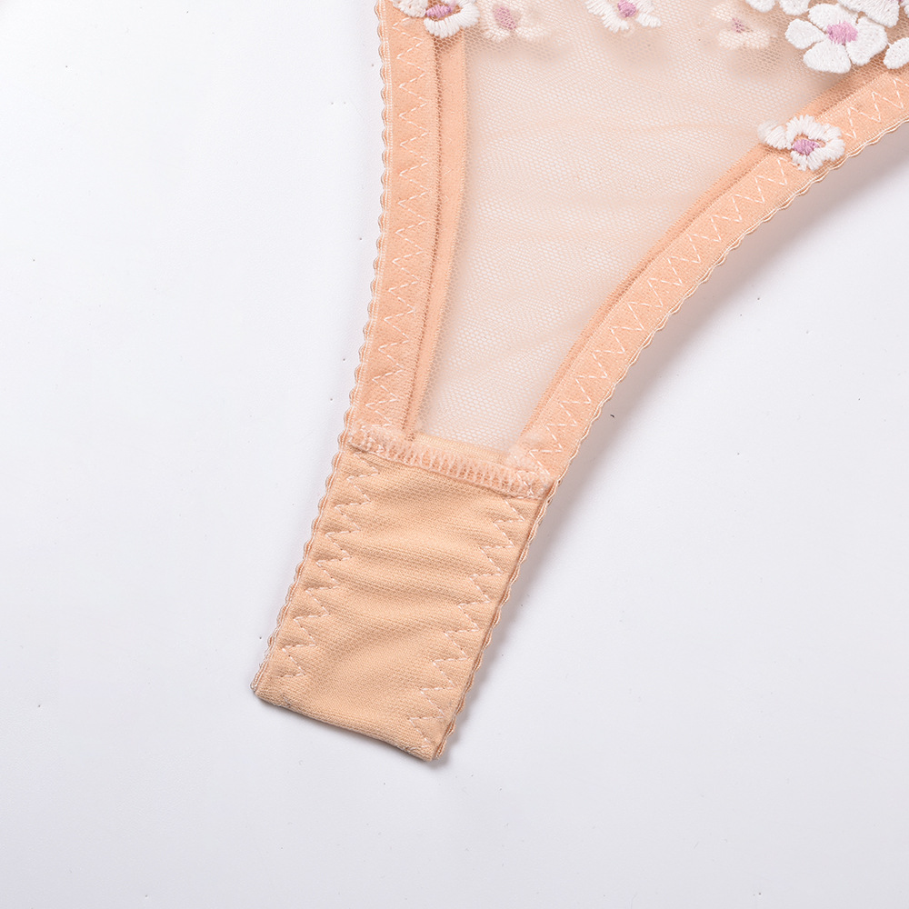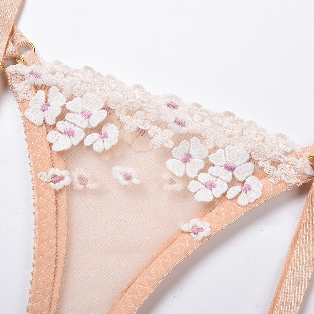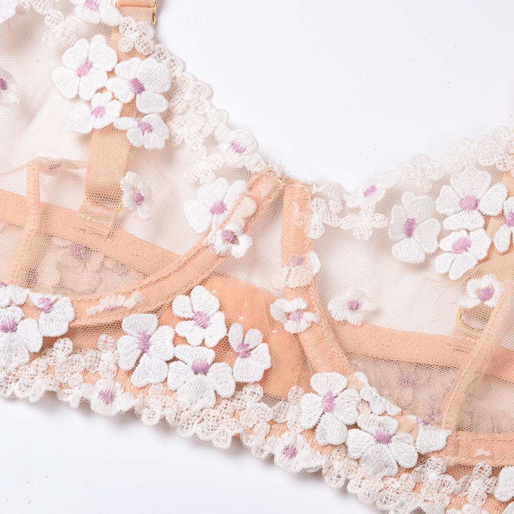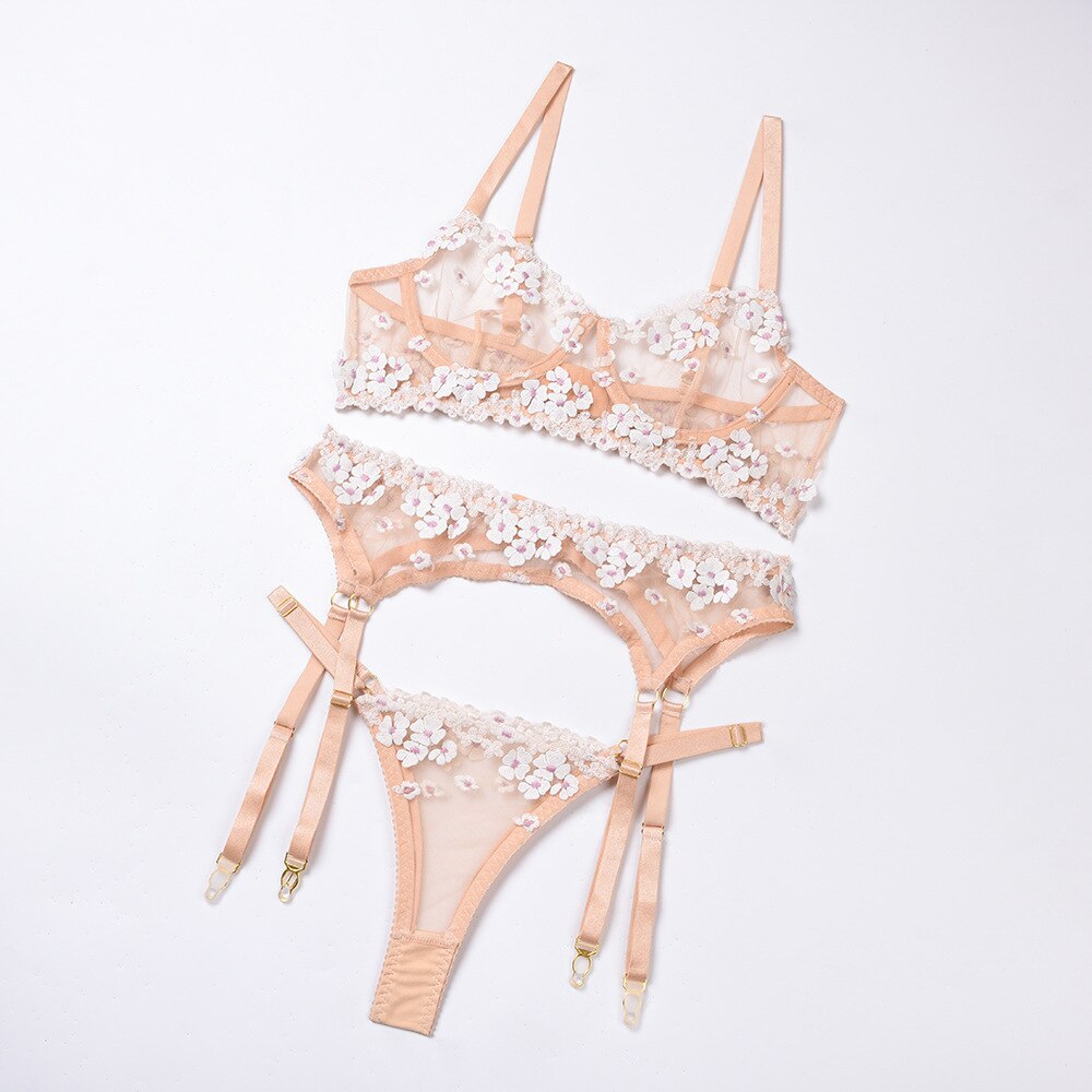 Billionm Sexy Lace Lingerie Set Pink Underwear Floral Appliques Push Up Bra and Panty Fancy Sissy Intimate Transparent Underwear Lingerie