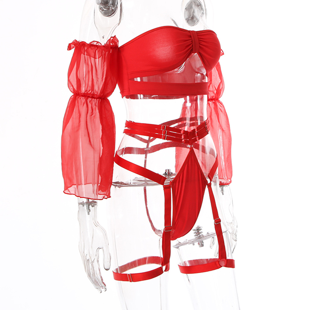 Billionm Sexy Lingerie Set Red Lace Underwear Off Shoulder Sleeves Nightwear Erotic Bra and Panties Hollow Out Mesh Intimate Sensual Sets