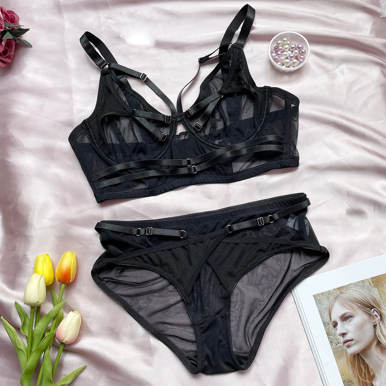 Billionm Sexy Lingerie Transparent Bra Set Woman 2 Pieces Fancy Underwear Patchwork Luxury Hot Transparencies Lace Intimate