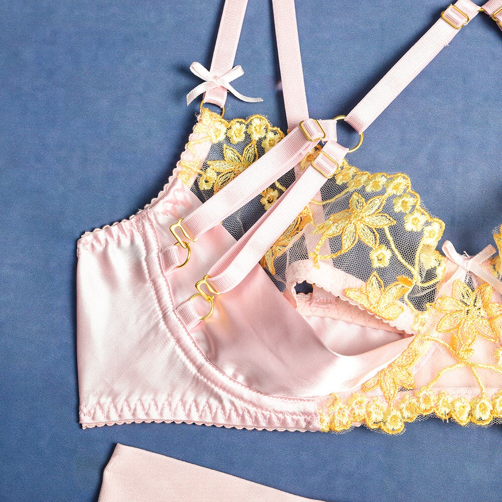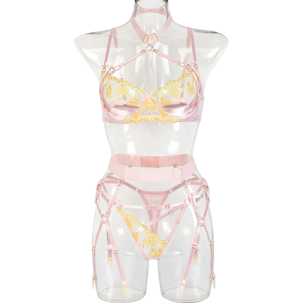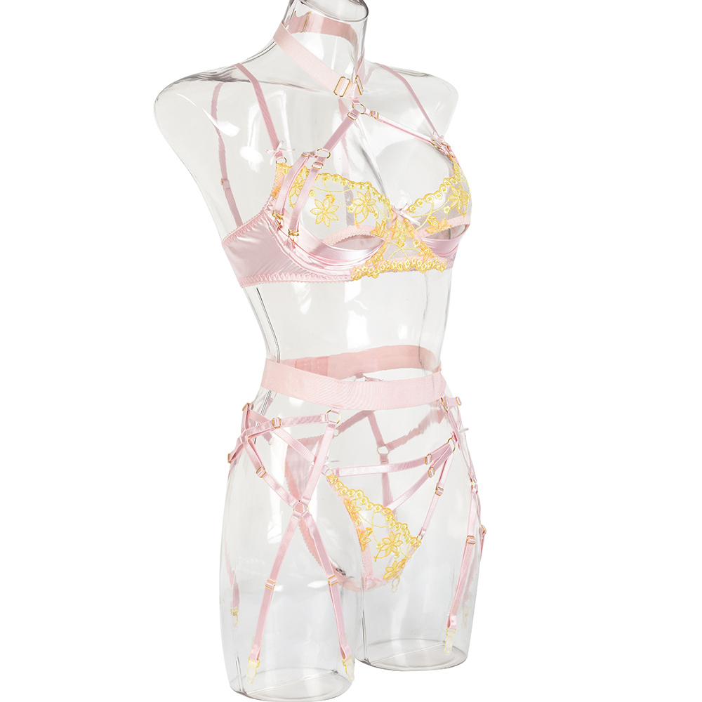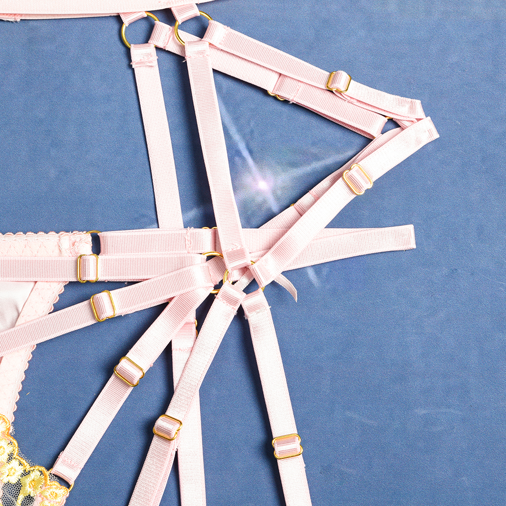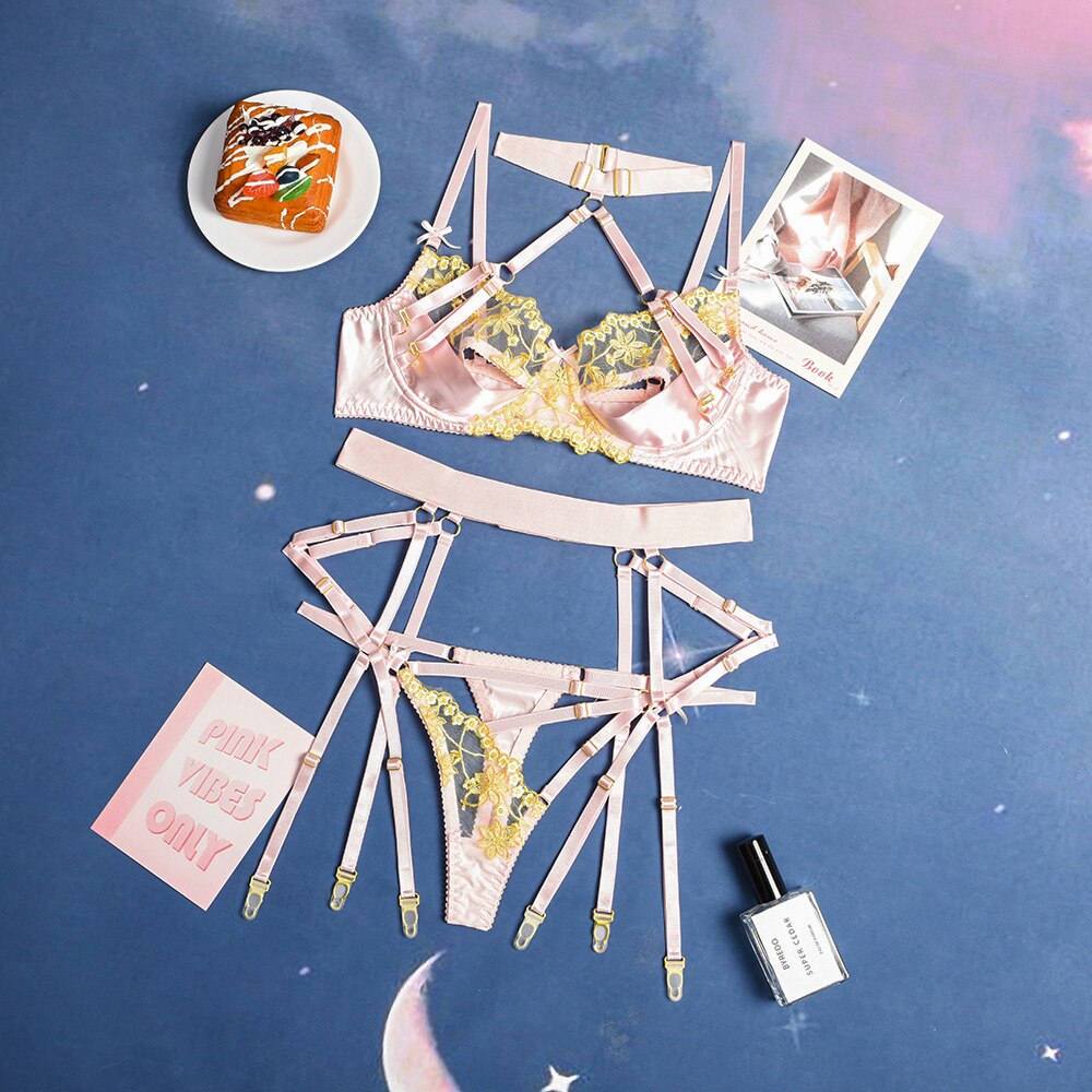 Billionm Sexy Lingerie Women Panties Bra Set Lace Hollow Out Underwear Pink Bandage Nightwear Erotic Porn Satin Lingerie Set Embroidery