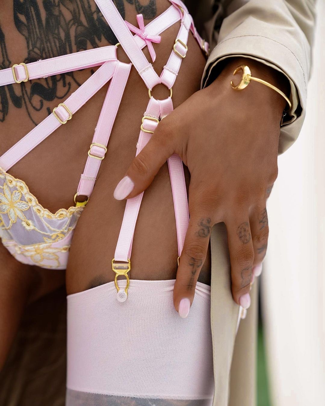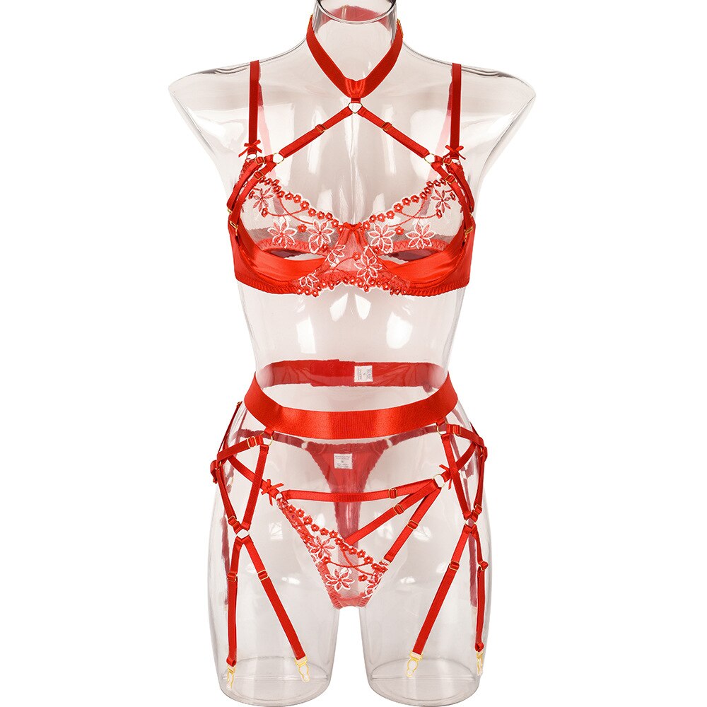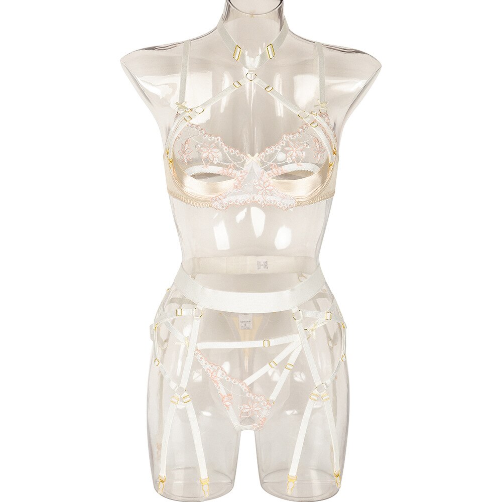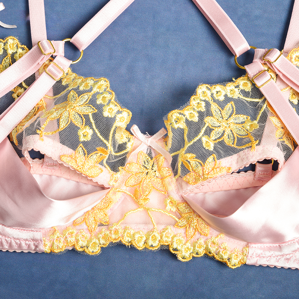 Billionm Sexy Lingerie Women Panties Bra Set Lace Hollow Out Underwear Pink Bandage Nightwear Erotic Porn Satin Lingerie Set Embroidery