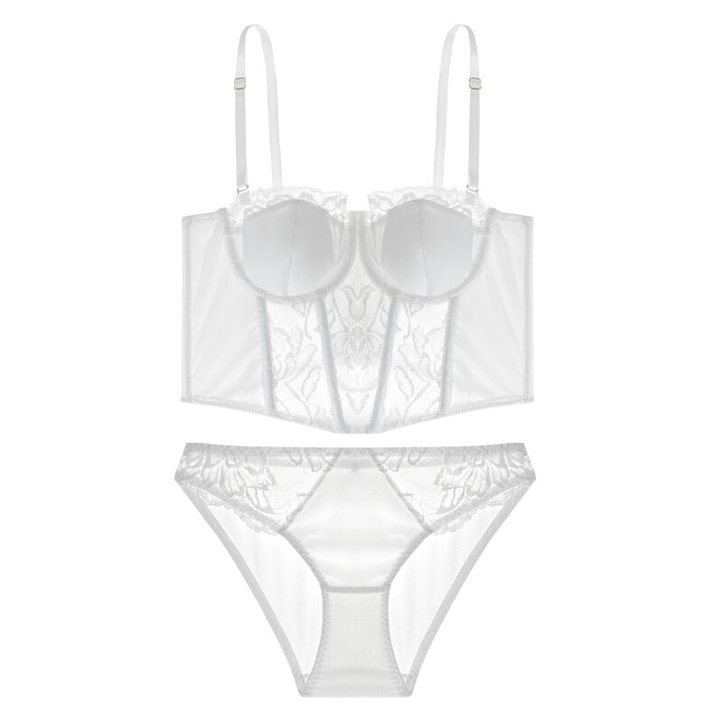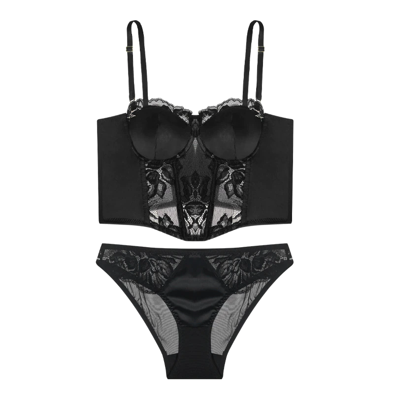 Billionm Sexy Silk Splicing Bra Set Women Lace Embroidery Steel Widen Shapewear French Black Underwear Convertible Straps Brassiere