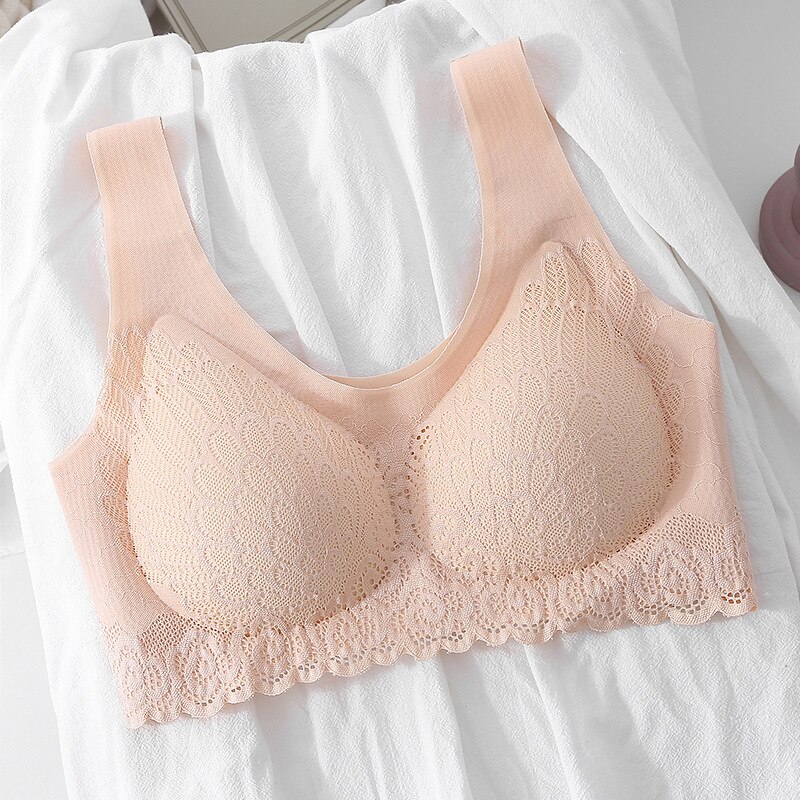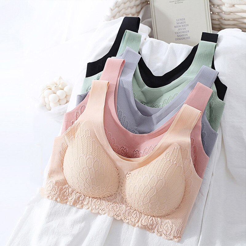 Billionm Size Bra Seamless Bras For Women Underwear BH Sexy Lace Brassiere Push Up Bralette With Pad Vest Top Bra Gathers Latex 4.0