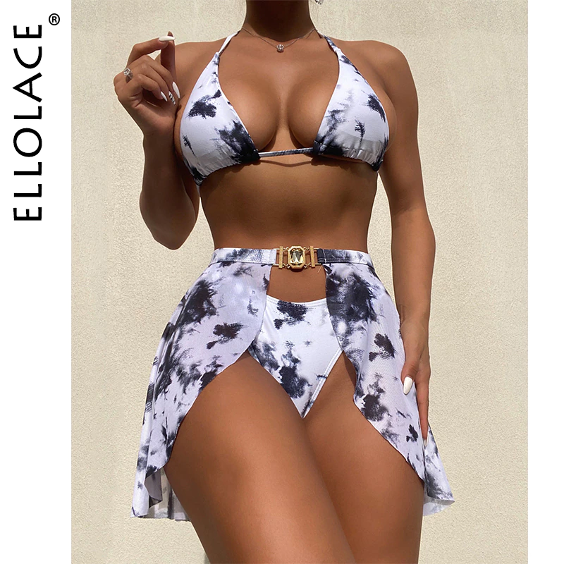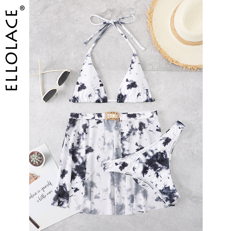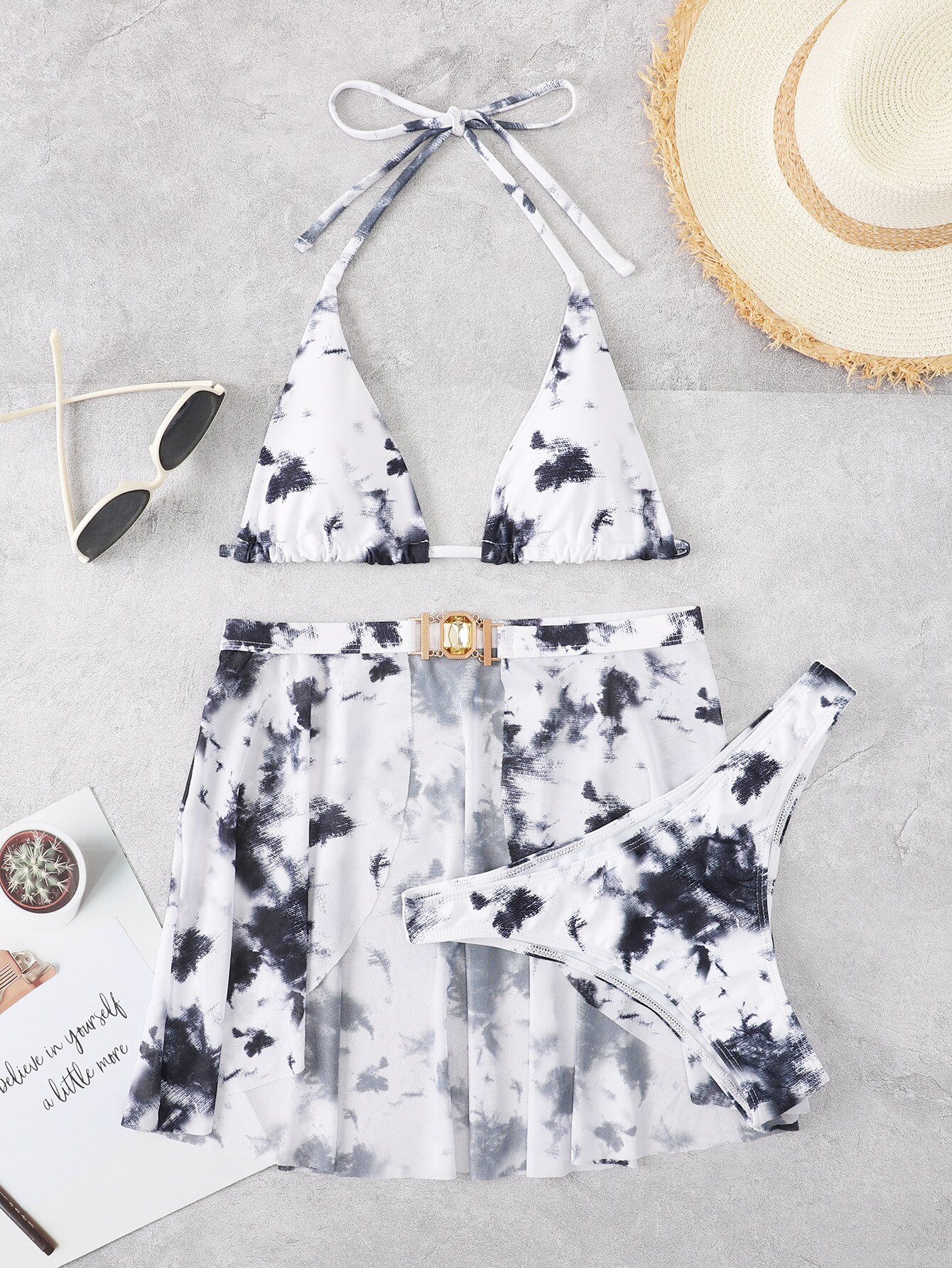 Billionm Tie Dye Bikini 3-Piece 2022 New Swimsuit And Cover Ups Halter Beach Wear Summer Stylish Sexy Swimwear Brazilian