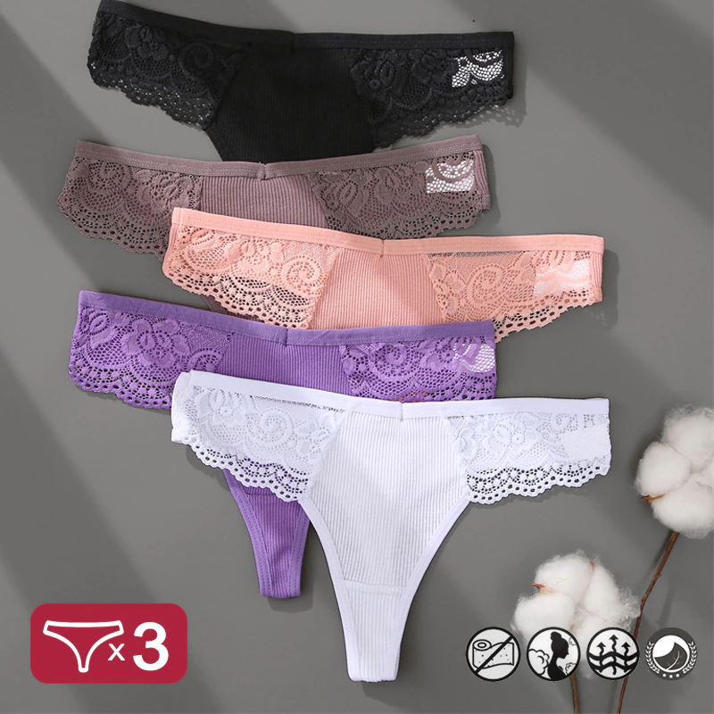 Billionm Women Cotton Panties Sexy Lace Underwear G-String Thong Perspective Hollow Out Lingerie Female Comfortable Low Waist Underpant