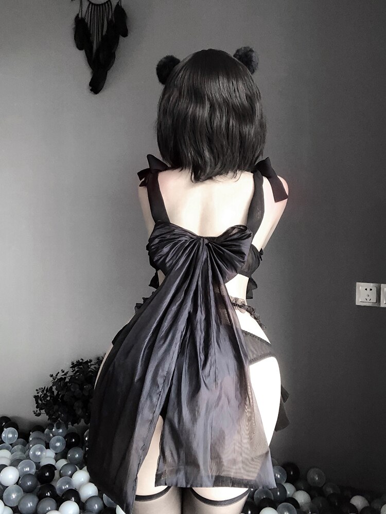 Billionm Women Mesh Kawaii Erotic Lingerie Japanese Anime Cosplay Backless Bra and Panties Set Cute Sweet Temptation Maid Costumes