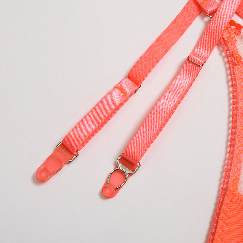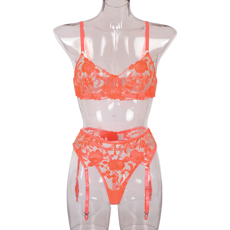 Billionm Women Sexy Lingerie Sex Sensual Bra and Panty 3 Pieces Set with Garter Belt Neon Color Lace Underwear Floral Embroidery Lingerie